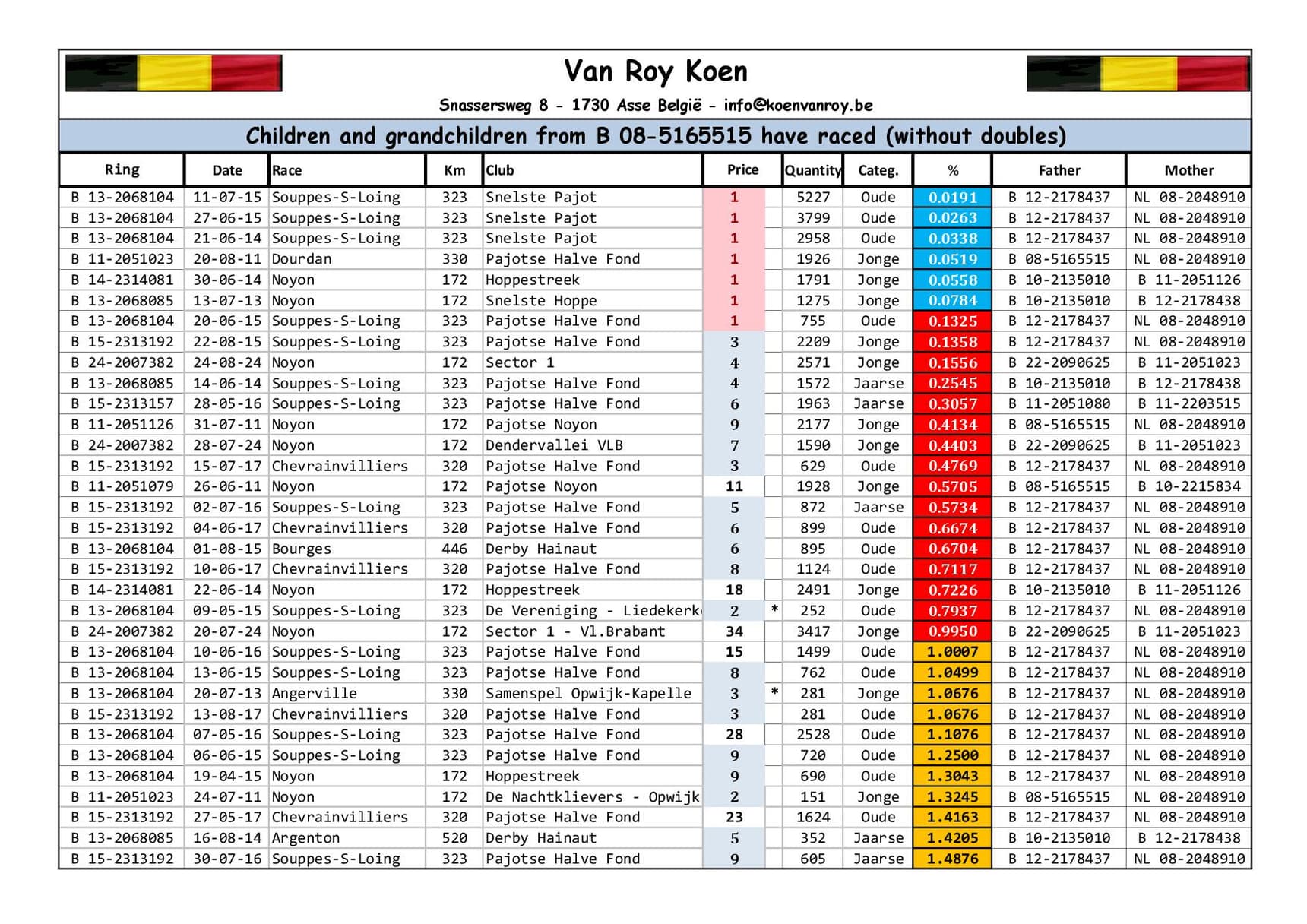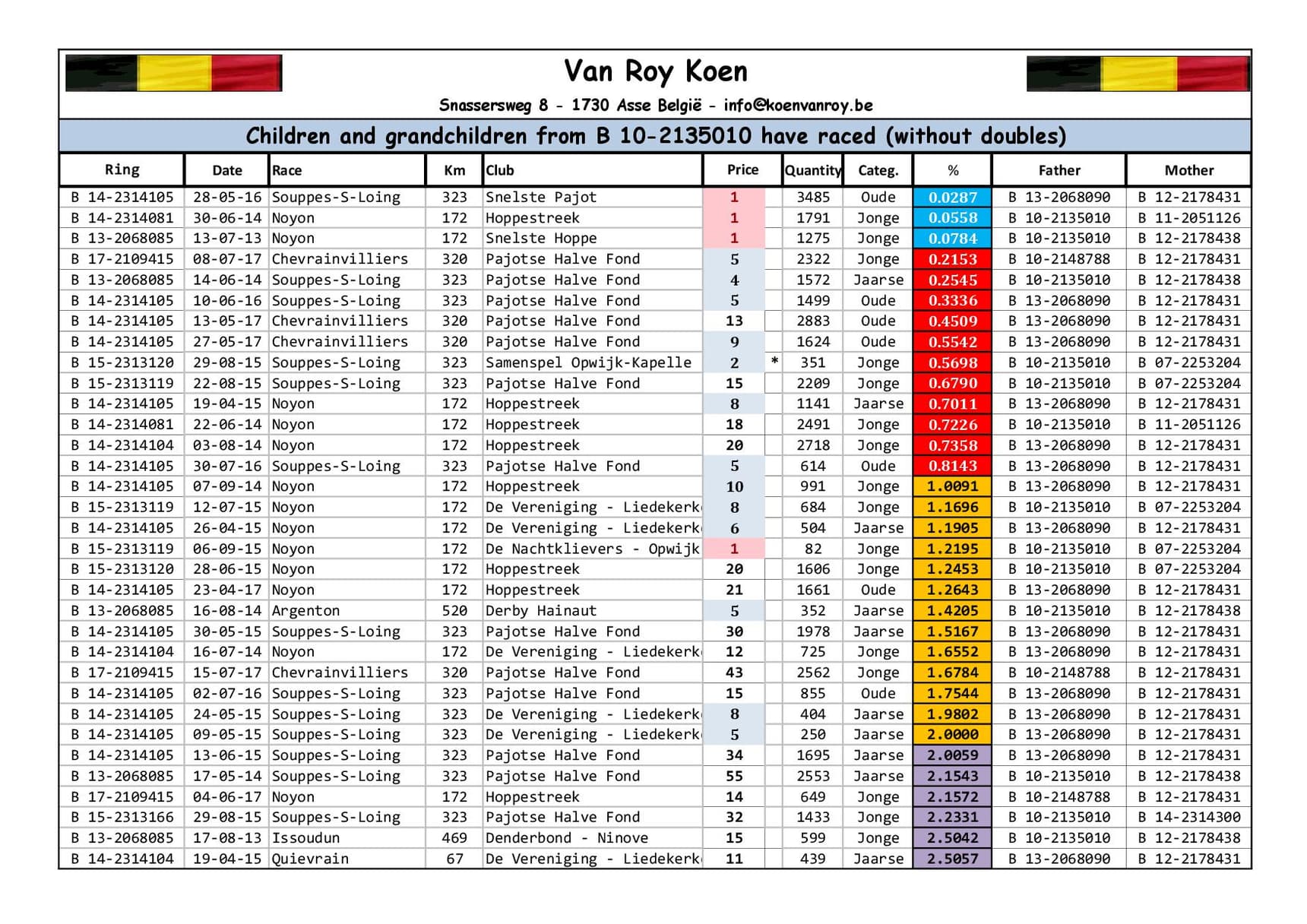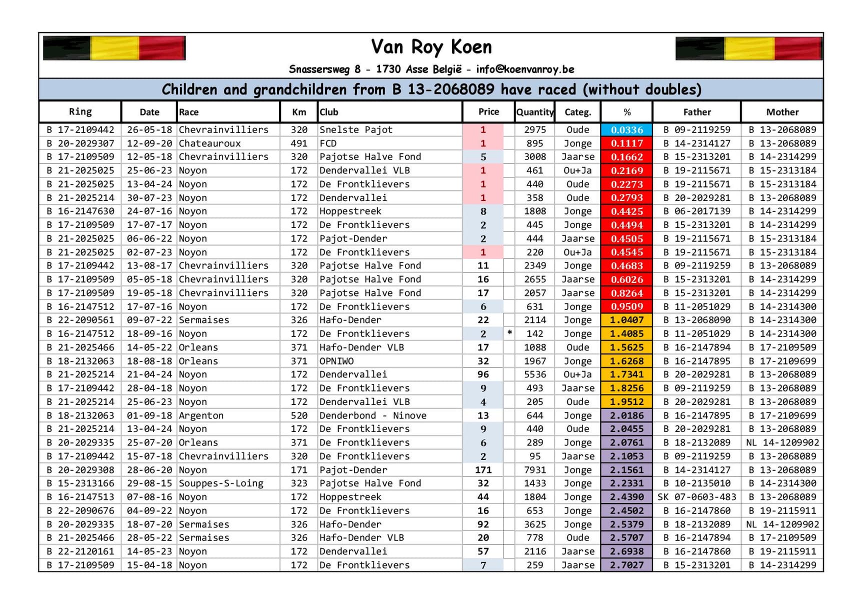 Breeder:VAN ROY KOEN 范路易·坤