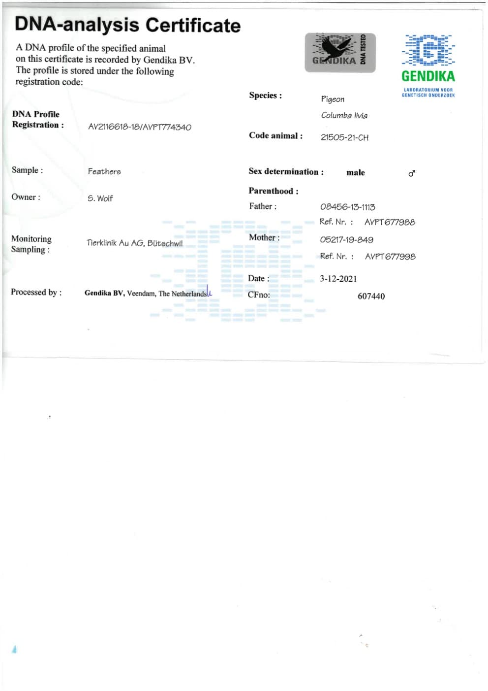 Breeder:ALP RACE TEAM/SIMON WOLF 阿尔卑赛鸽队
