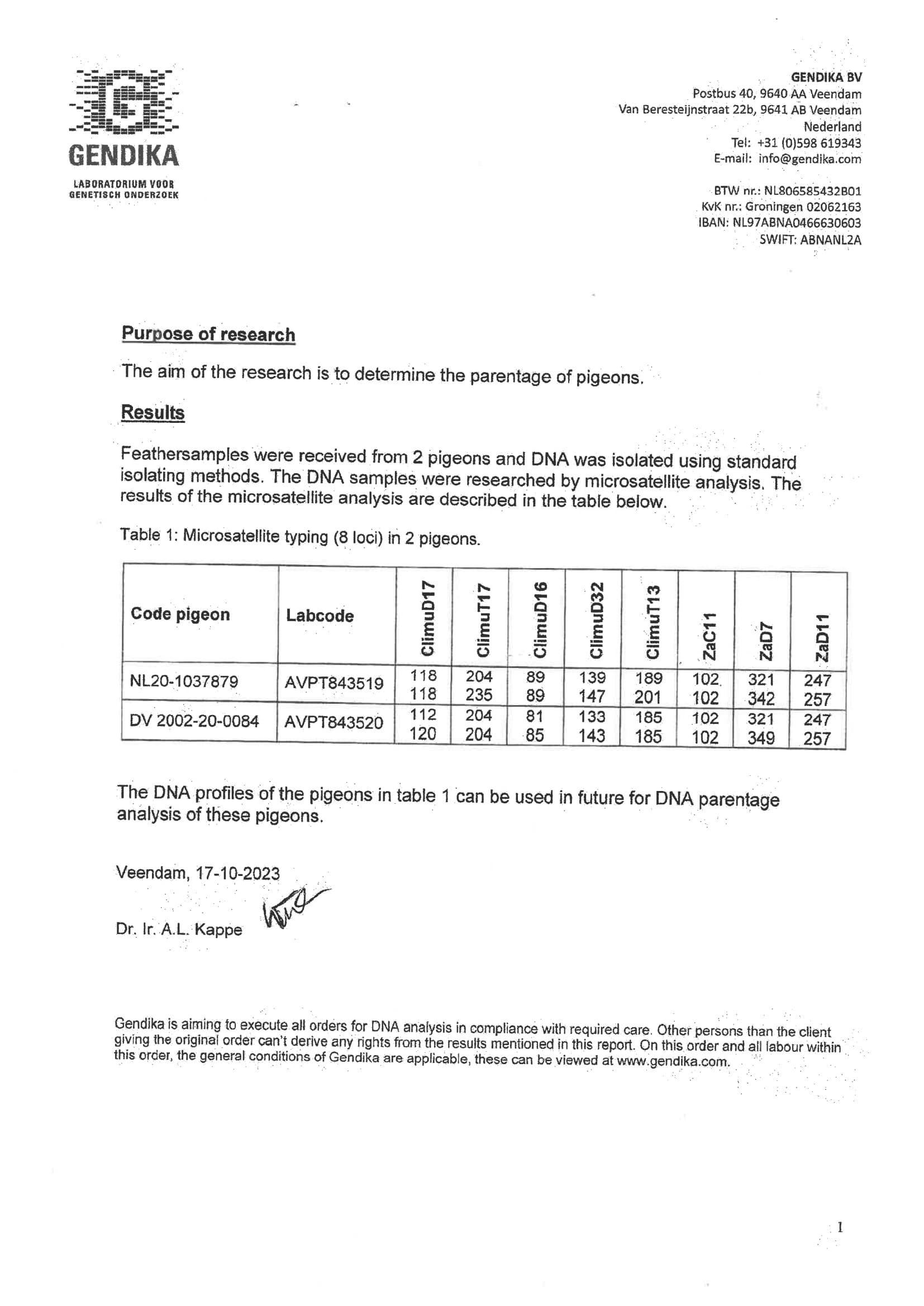 Breeding line “Orion” and “Sophie” (3rd Nat. St. Vincent)