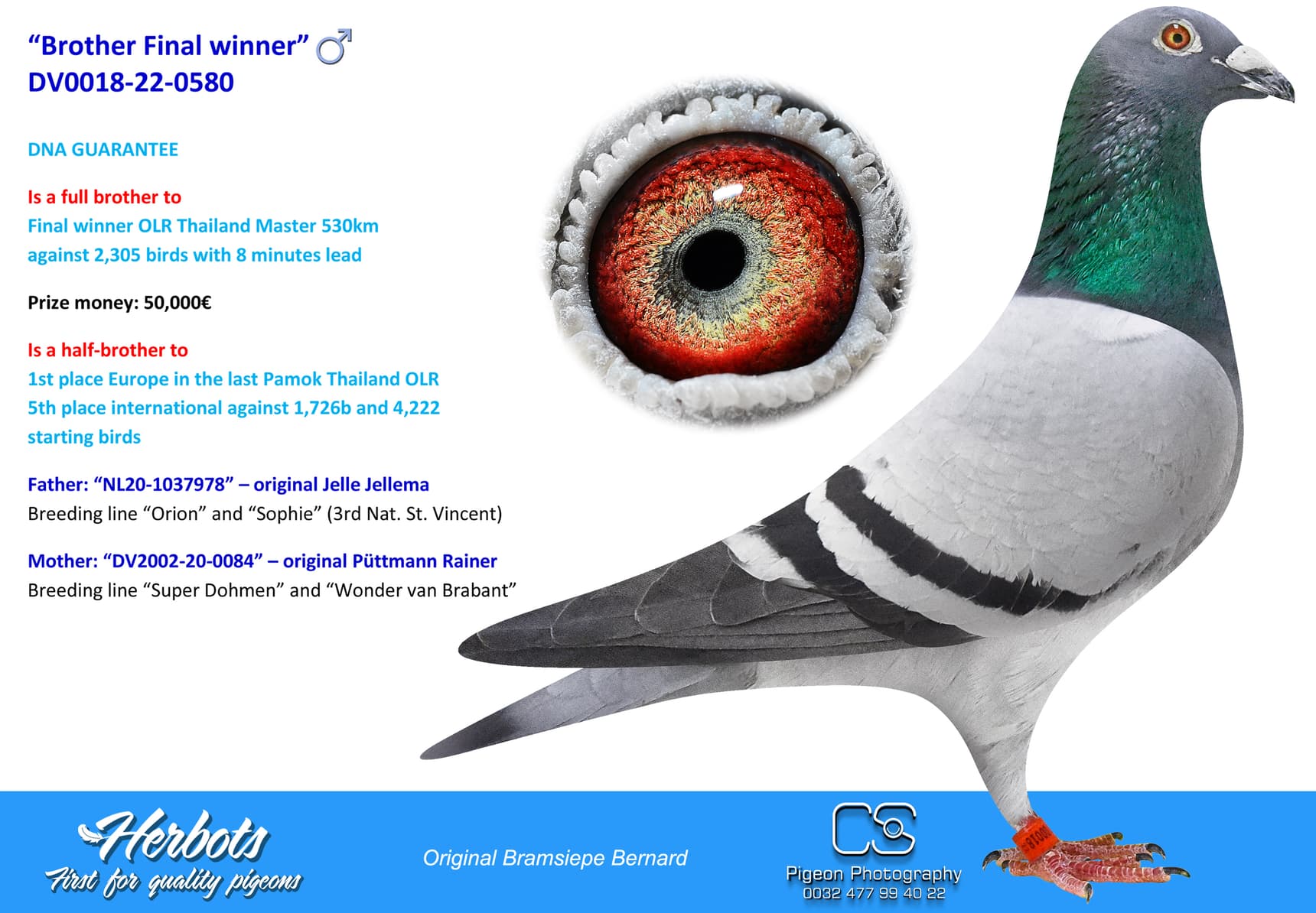 Final winner OLR Thailand Master 530km against 2,305 birds with 8 minutes lead