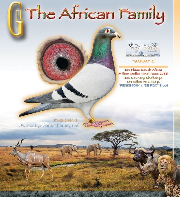 "Sanjay1" on the loft of Mike Ganus.: 1e Million dollar race zuid africa 2014 (picture)