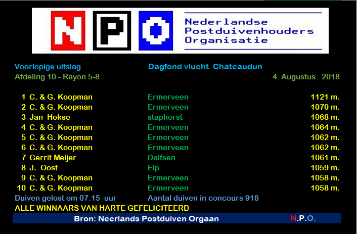23rd Ace pigeon 1 day fond 2018