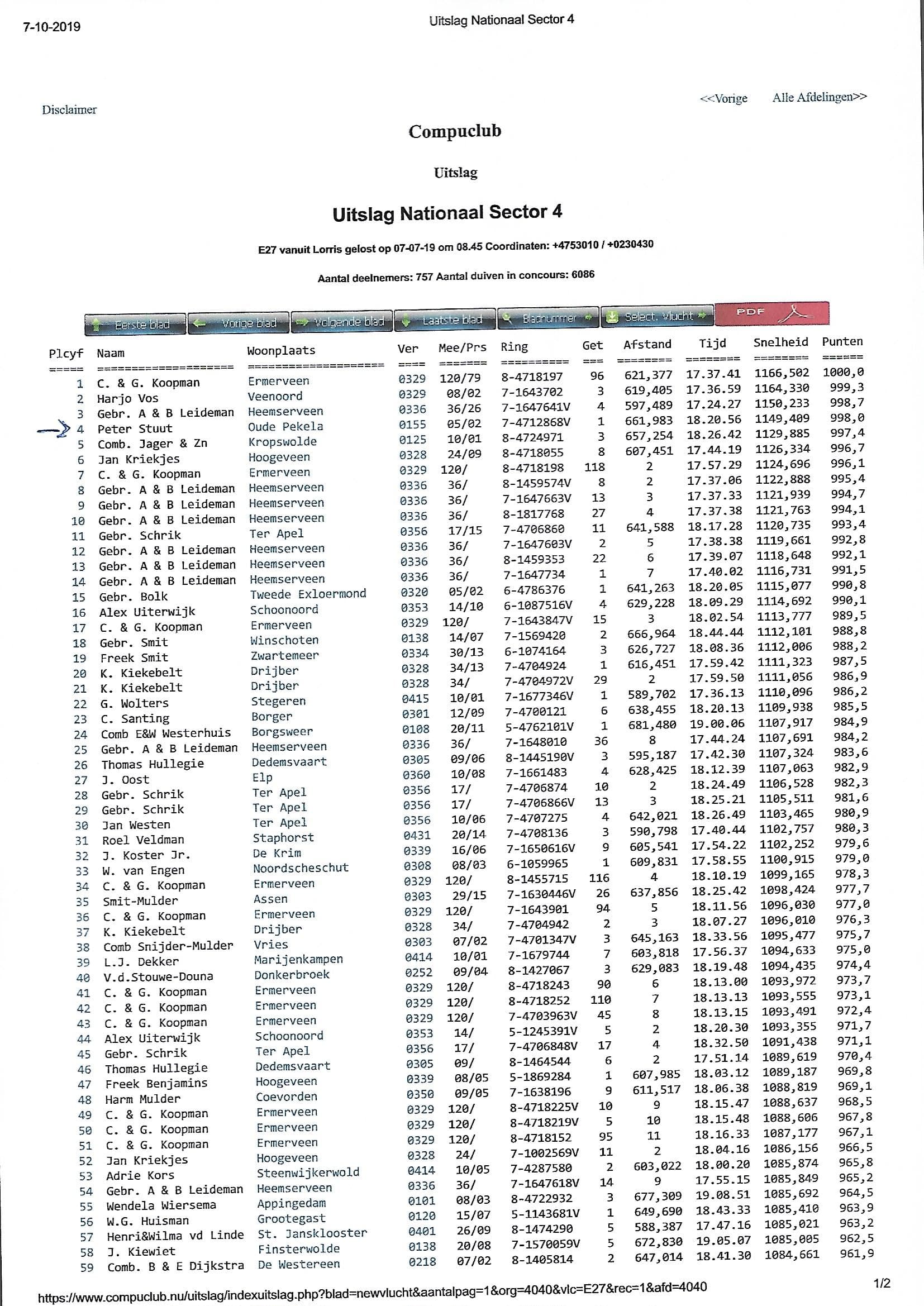 1 Nat. NPO Lorris N.U. 3,121b. 661km 4 Nat. NPO Sect. 4 6,086b.