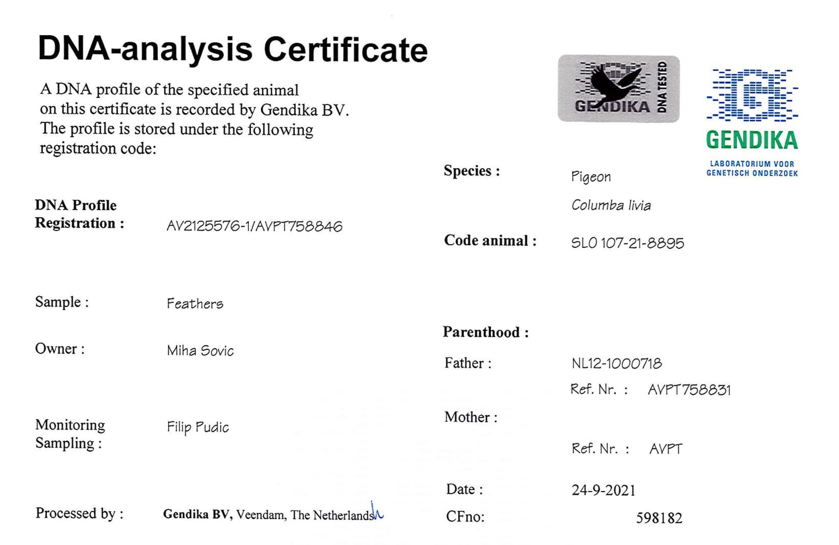 Mother: “SLO-107-18-3082” – 75% Hok Vercammen