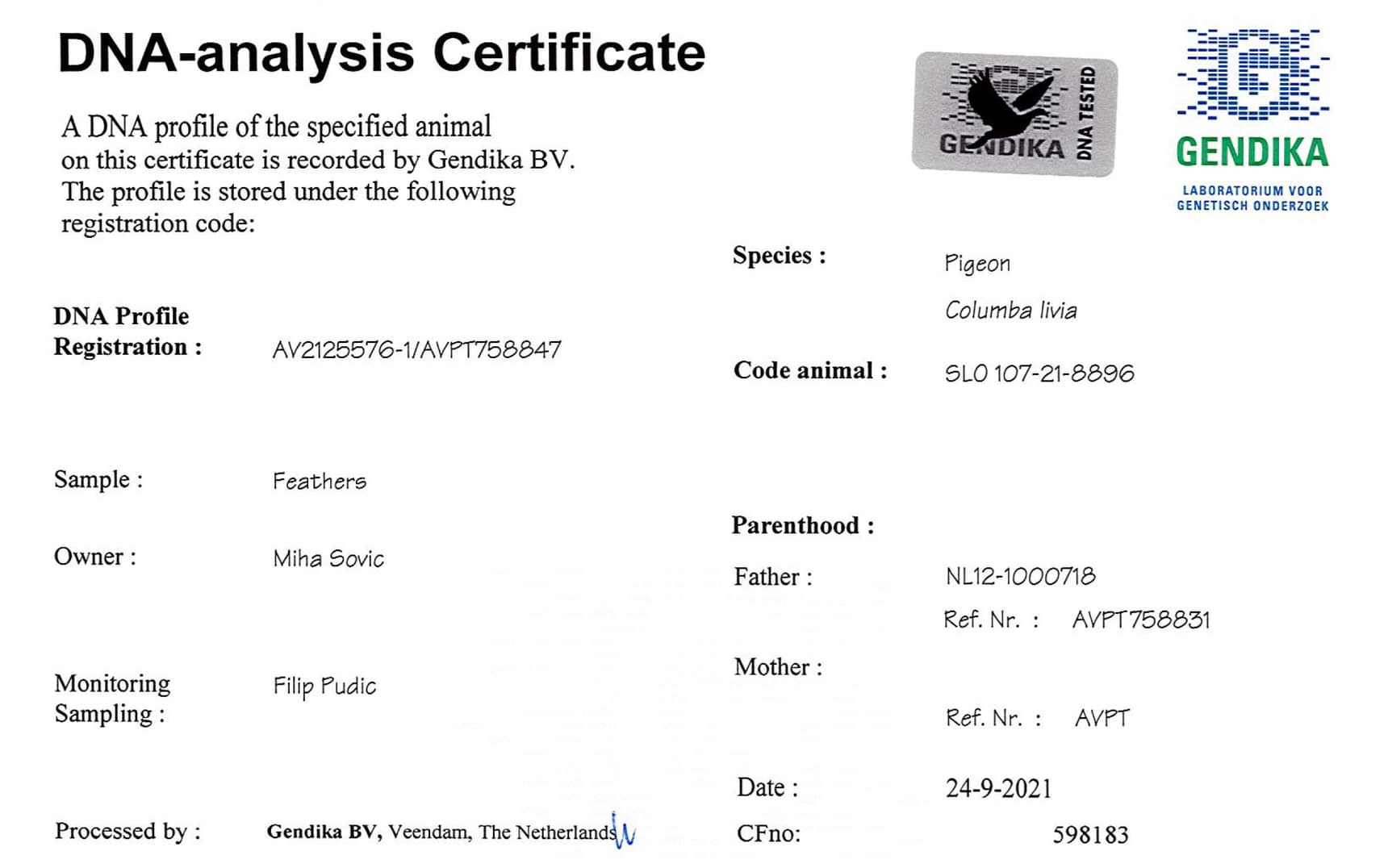 Mother: “SLO-107-18-3082” – 75% Hok Vercammen