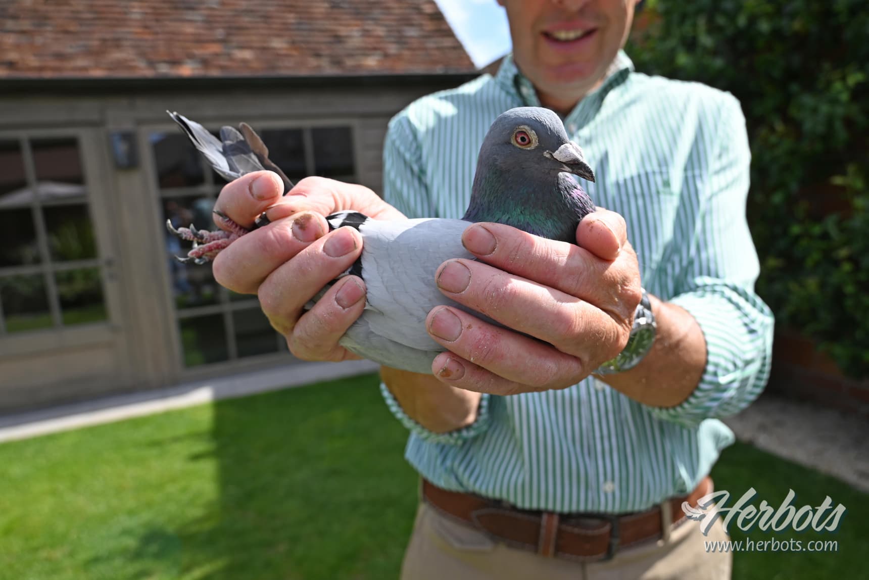 Vinkt: "It was the first time that "Fabio" was basketed for a national race" Dirk starts his story "and lo and behold... immediately bingo. "Fabio" came like an arrow out of the sky from Vinkt and did not hesitate for one second to register. As if the devil was at his heels. Whether he was specially motivated? Not that I know. As always, the widowers only received the nest dish in their nest box. Who knows, maybe something special happened during the week."