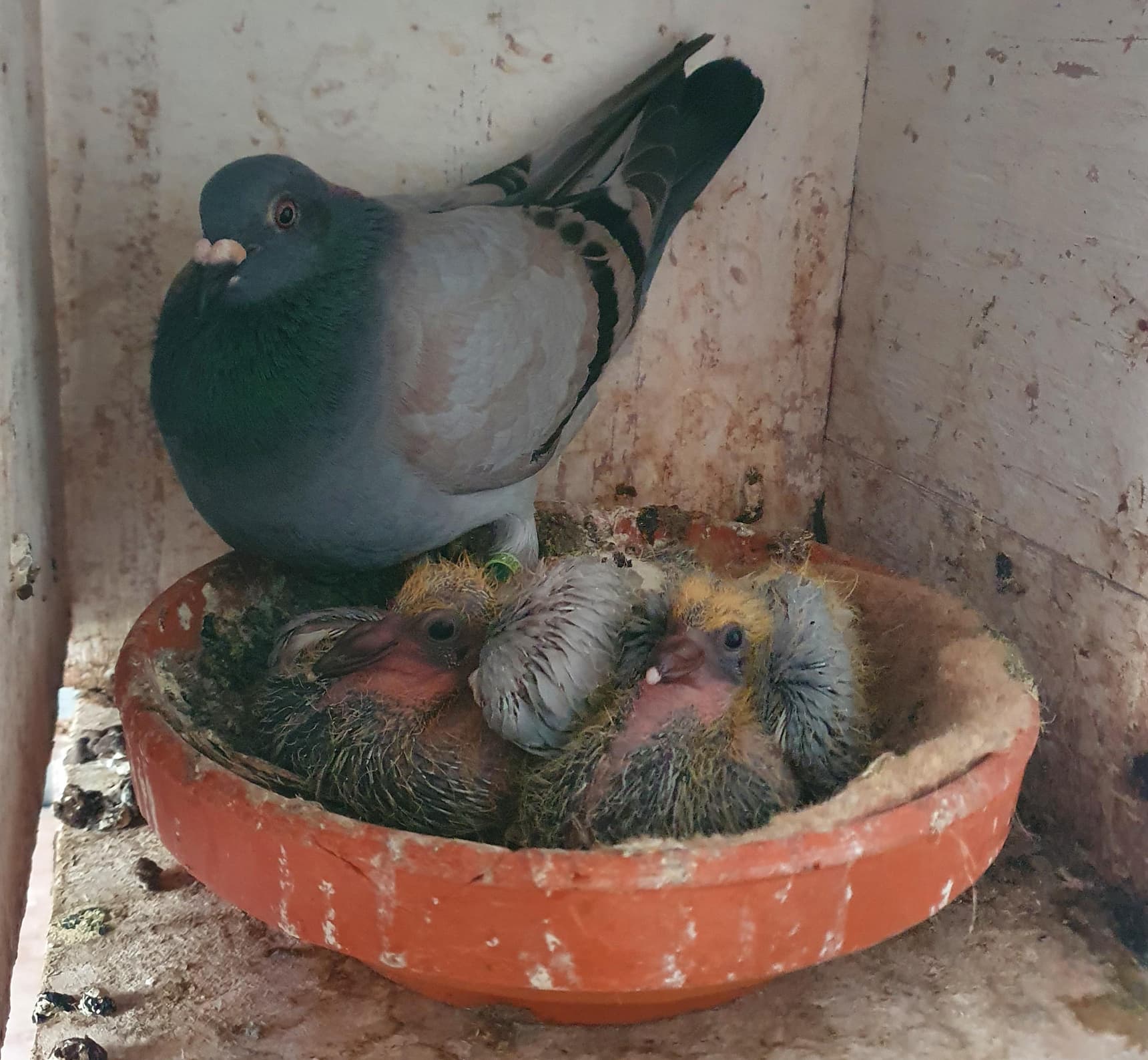 The breeding loft houses 18 couples. 75% of the breeding loft consists of pigeons from Peter Van de Merwe (Dordrecht) , 10% Gebroeders Scheele and 15% Elzinga (Harkema). "