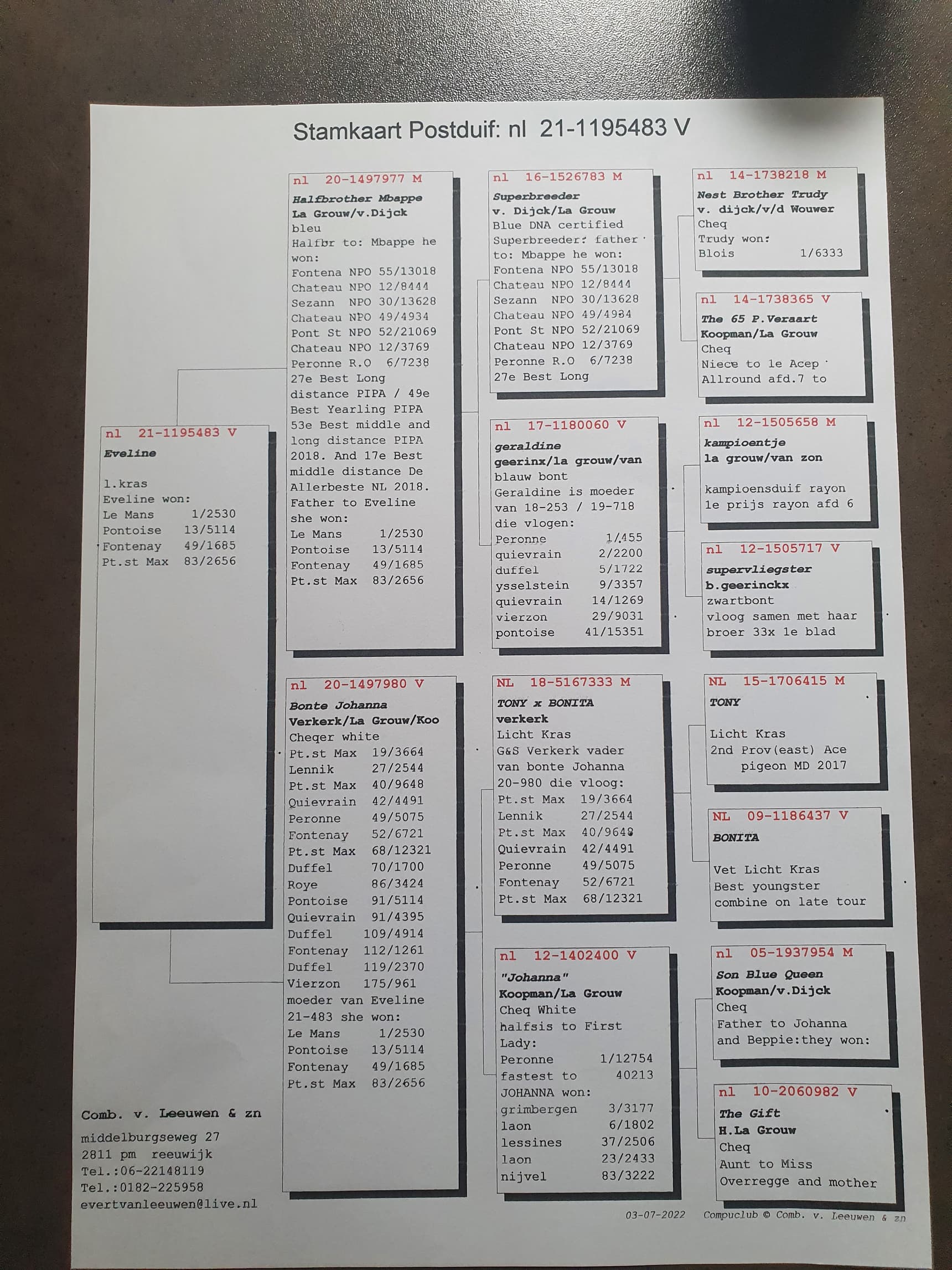 "Eveline" NL21-1195483 won before her provincial victory also: 13th Pontoise 5,114d. - 49th Fontenay 1,685b. - 83rd Pont 2,656b.