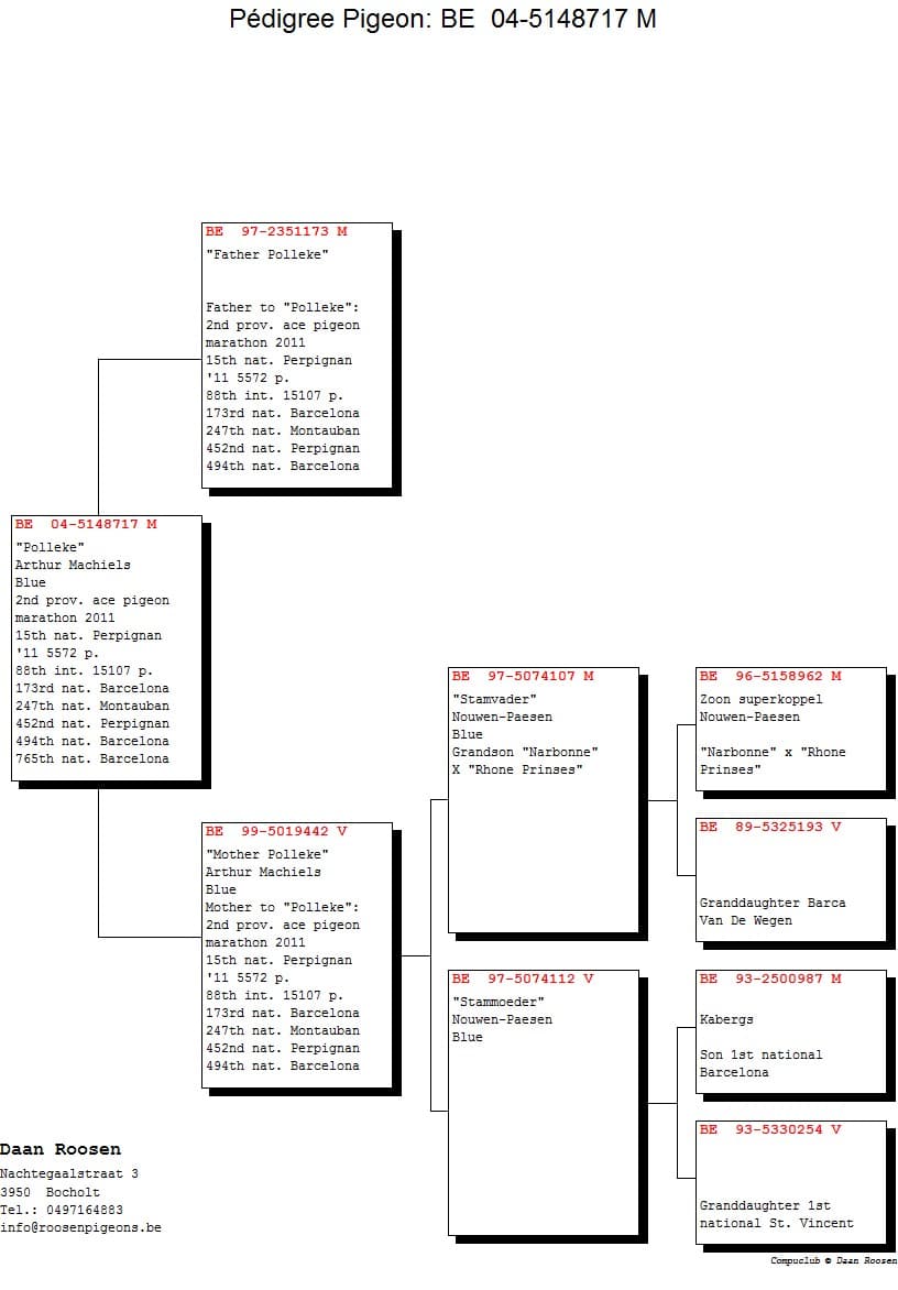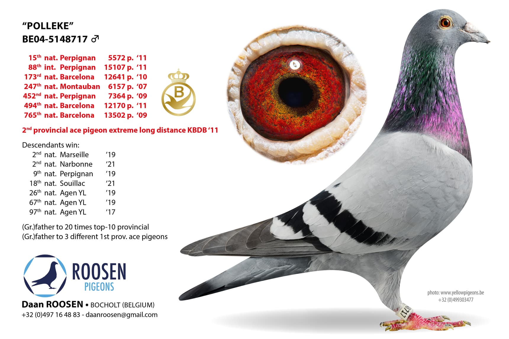Son of stock father “Polleke” Arthur Machiels 15th Nat Perpignan 5,572b x “Kiana” Frank Zwiers