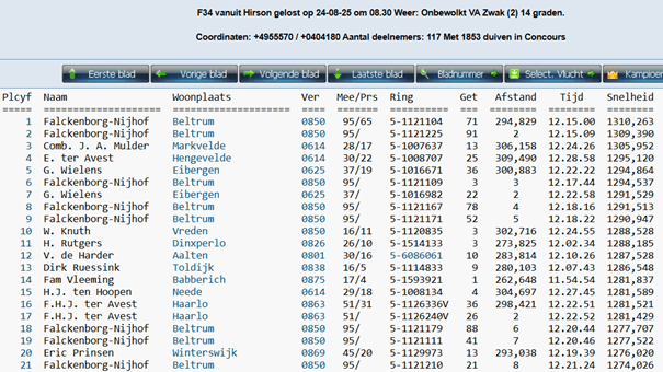 En 2022, ils ont remporté un titre dont rêvent de nombreux colombophiles tout au long de leur carrière : le titre de champion national demi-fond. Pour certains, c'est une fin en soi... mais pas pour ce tandem passionné. En 2023 et 2024, ils ont prouvé que leur succès n'était pas le fruit du hasard. Ils se sont illustrés tant en vitesse, en demi-fond qu'en fond, ce qui est remarquable, car le fond n'était auparavant pas leur point fort. En 2025, ils ont obtenu la confirmation ultime : des arrivées précoces dans le fond et à nouveau de bons classements nationaux.