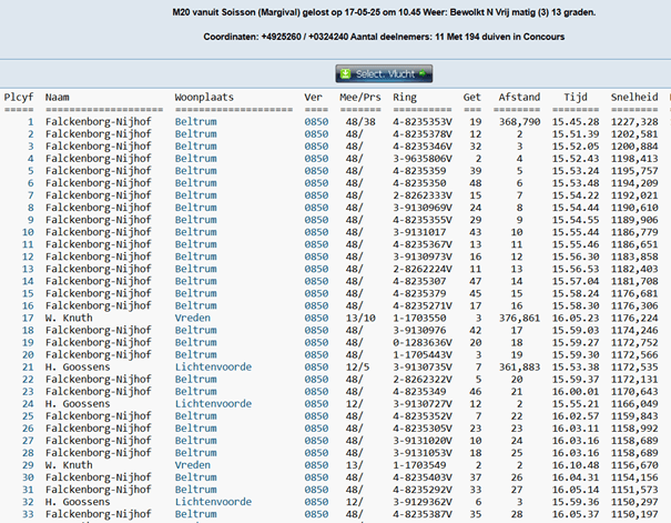 Fr. Timmermans – Gebr. Leideman – Dirk van den Bulck – Leo Heremans – H. ten Brincke) , renforcée par des pigeons provenant de pigeonniers renommés tels que :