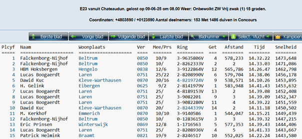 Les pigeons d'as/pigeons d'élite qui figurent dans les pedigrees de Falckenborg-Nijhof