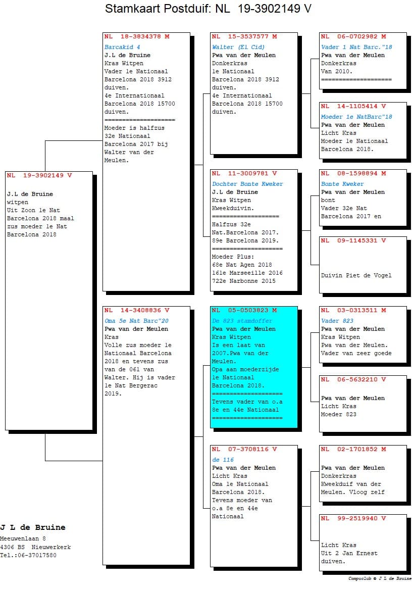 Gr.V. NL 05-0503823 Ancêtre 823 - Walter Van der Meulen