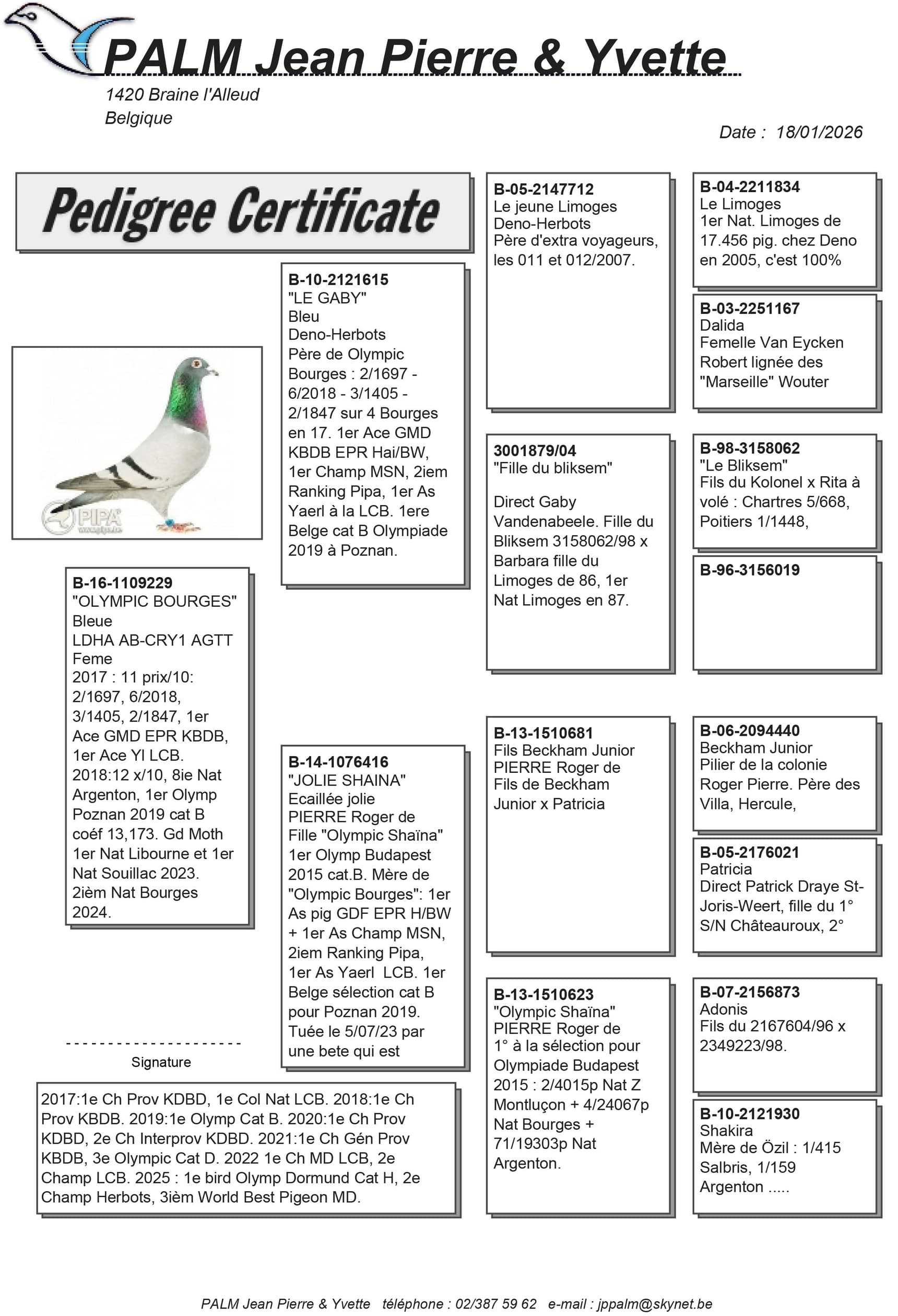 Je tiens à remercier chaleureusement Jean-Pierre Palm pour m’avoir si généreusement accueilli dans son colombier et pour m’avoir ouvert les portes de sa passion avec tant de patience et de disponibilité. Nous lui souhaitons une excellente saison 2026, pleine de succès et de beaux moments avec ses pigeons, à l’image de l’engagement et de la rigueur qui le caractérisent.
