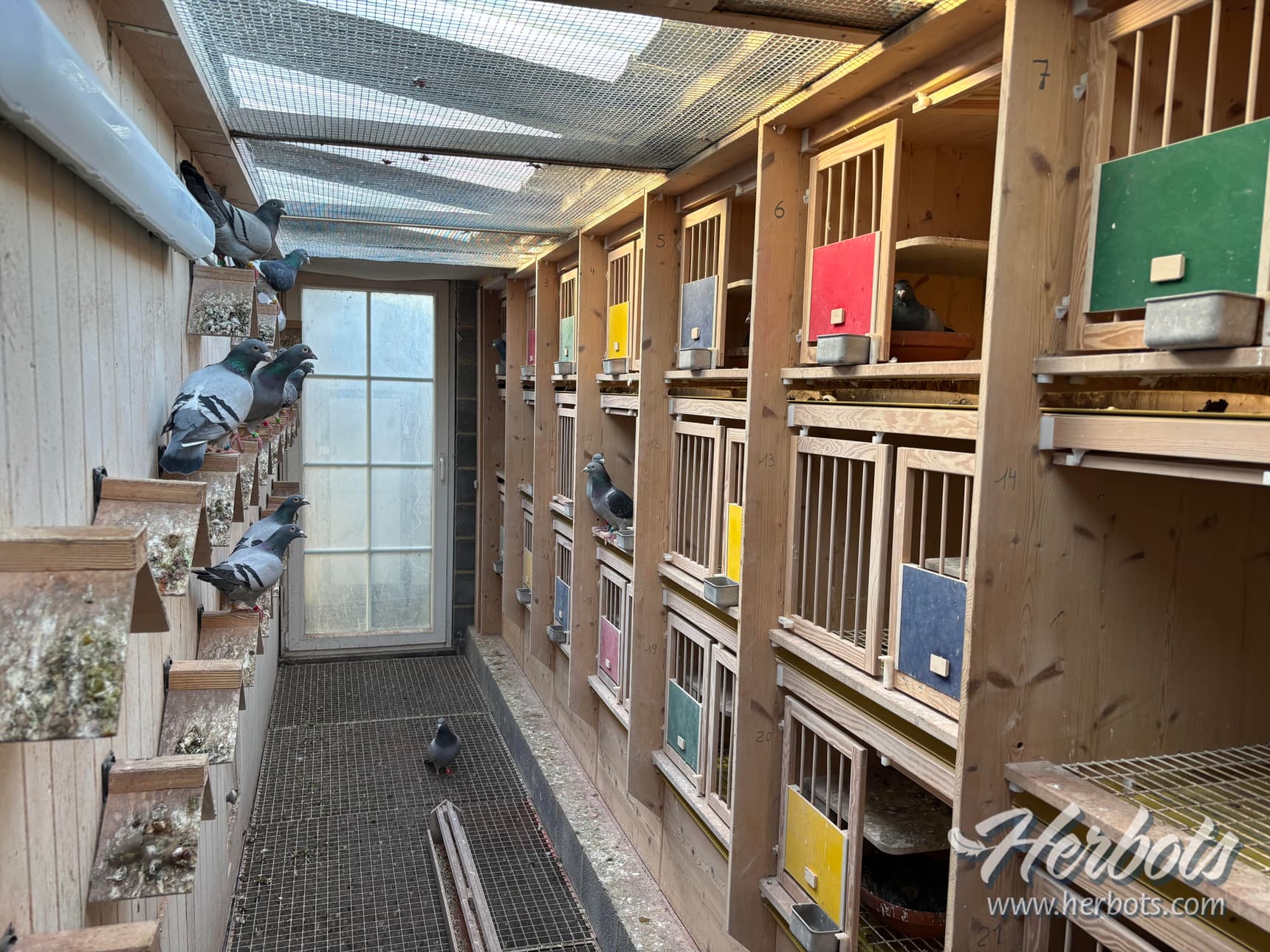 La reproduction est gérée avec la même réflexion. Habituellement, Jean-Pierre n’accouple pas avant la Chandeleur, faute de temps, ce qui repousse parfois la sortie des jeunes à la fin mars. Cette année, dix couples ont exceptionnellement été accouplés mi-décembre, les autres suivant le schéma traditionnel. La colonie compte environ vingt couples de reproducteurs, issus de lignées solides et reconnues. Les origines principales reposent sur Gaby Vandenabeele, notamment le célèbre Bliksem via Deno Herbots et Roger Pierre de Pecrot, renforcées au fil des années par d’autres apports ciblés comme Porsche 991 ou Prince Porsche. Des collaborations en co-élevage avec PIPA, Bart Geerinckx et des pigeons olympiques polonais témoignent d’une volonté constante d’amélioration génétique sans jamais tomber dans l’excès.