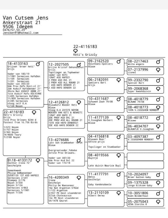Deze Orleans werd gewonnen door "Keti's Grizzly" (B22-4116183), een jaars duivinnetje dat al meer dan getoond heeft dat ze de kwaliteiten om de kop van de uitslag te vliegen in zich heeft. Zie bijgevoegde foto voor haar palmares