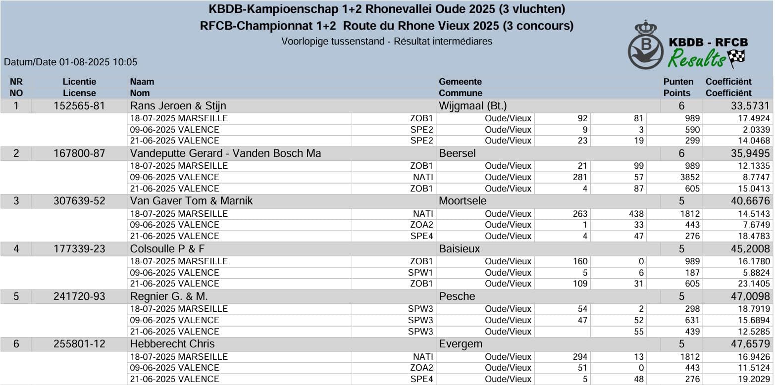 Laurent n’est pas l’homme des pédigrées et des longs discours, mais bien un homme de terrain dont les journées sont bien remplies puisque le nettoyage des casiers et du plancher des pigeonniers se fait encore à la main. Il est pointilleux, perfectionniste, bien organisé et la sélection des pigeons est réalisée sur base des résultats réalisés (maximum de prix par 10, avec 50% de prix au minimum). Et en cette année 2025, Laurent Colsoulle s’est encore distingué en se classant 4ème RFCB au championnat 1+2 Route du Rhône Vieux et 7ème As-Pig. Vieux RFCB Route du Rhône sur 2 concours.