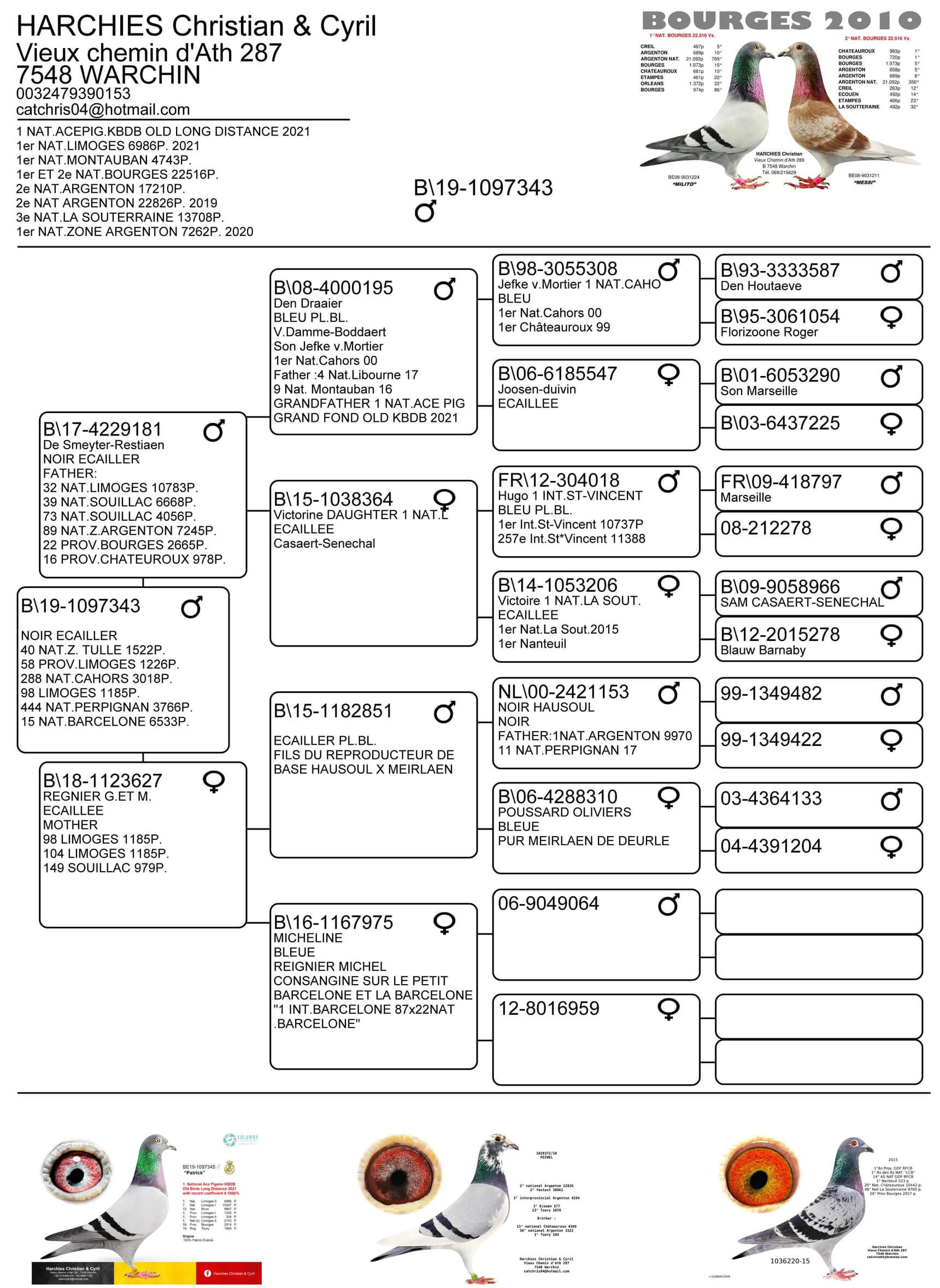 Regroupant leurs forces respectives en 2021, pour former le tandem ‘Christian & Cyril Harchies’, la saison 2021 sera extraordinaire et restera marquée dans les annales colombophilies belges. En effet, cette année-là, ils remportent leur 3ème victoire nationale en découvrant un véritable crack ‘PATRICK’ BE19-1097345 (pigeon élevé par Patrick Dubois de Gaurain) et qui tenez-vous bien, prestera : le 12ème Nat. Brive (8.807P), le 7ème National Limoges I (15.547P) et finira en beauté sa saison avec le 1er National Limoges II (6.986P). Ce ‘PATRICK’ est devenu 1er As-Pigeon National Fond RFCB 2021, en réalisant un coefficient ‘incroyable et record’ de 0,1956%, pulvérisant ainsi le meilleur coefficient belge de tous les temps (0,2396%) détenu jusque-là par le célèbre pigeon ‘ARMANDO’ (1 er As-Pigeon National Fond RFCB 2018) de Joël Verschoot et inutile de vous dire que le coefficient record de ‘PATRICK’ sera très difficile à battre.