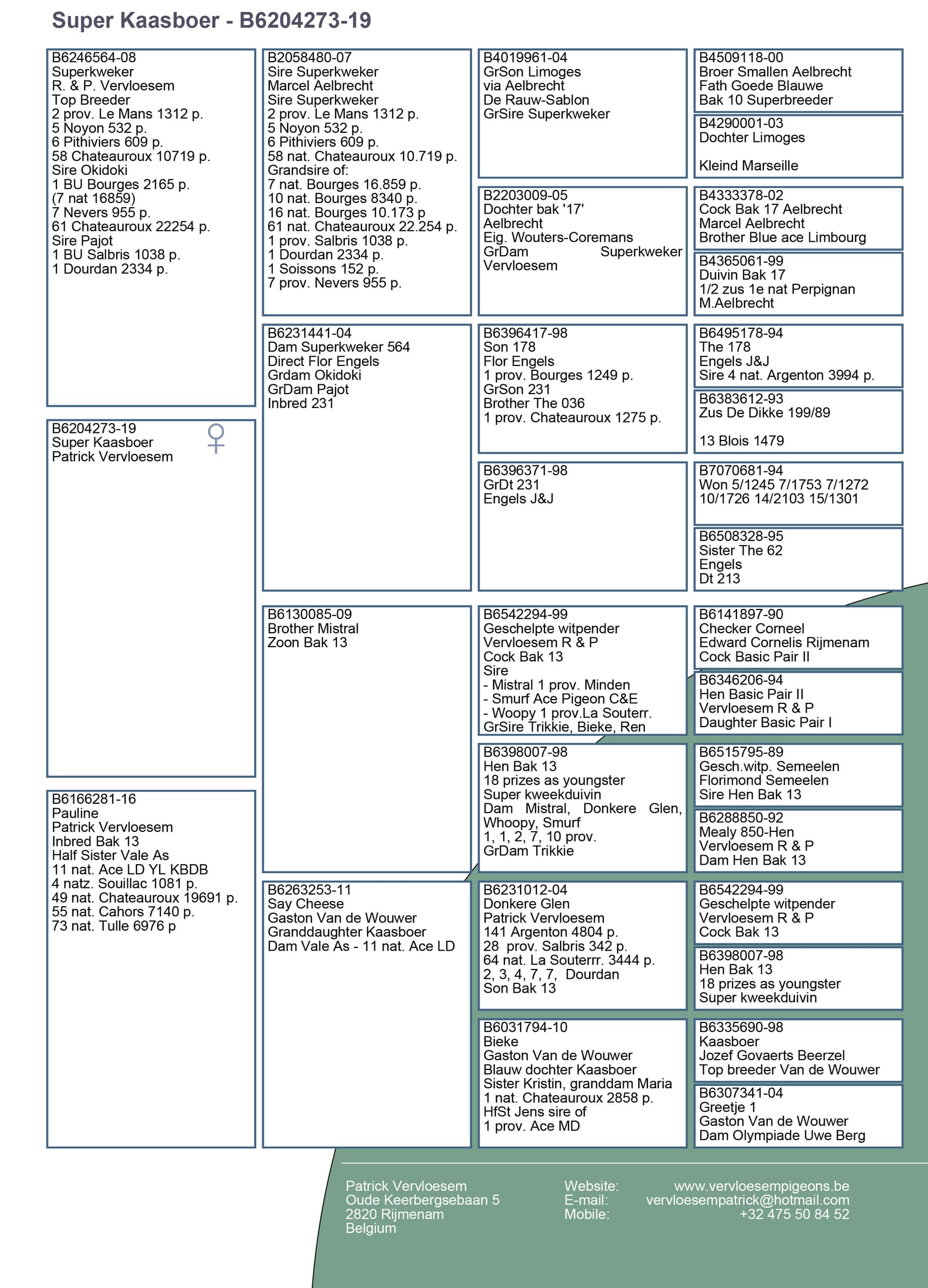 Grandfather of several current top pigeons in the racing team