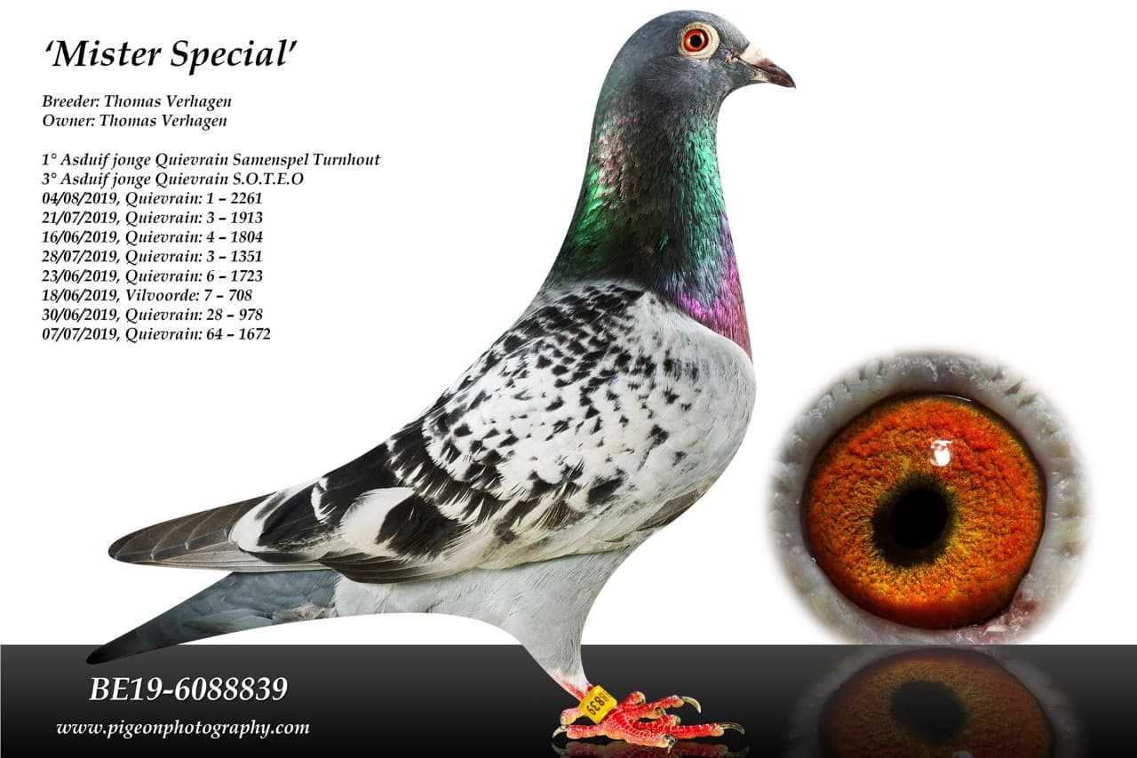 His "Mister Special" has the noble blood of the Van de Merwe pigeons flowing through his veins.