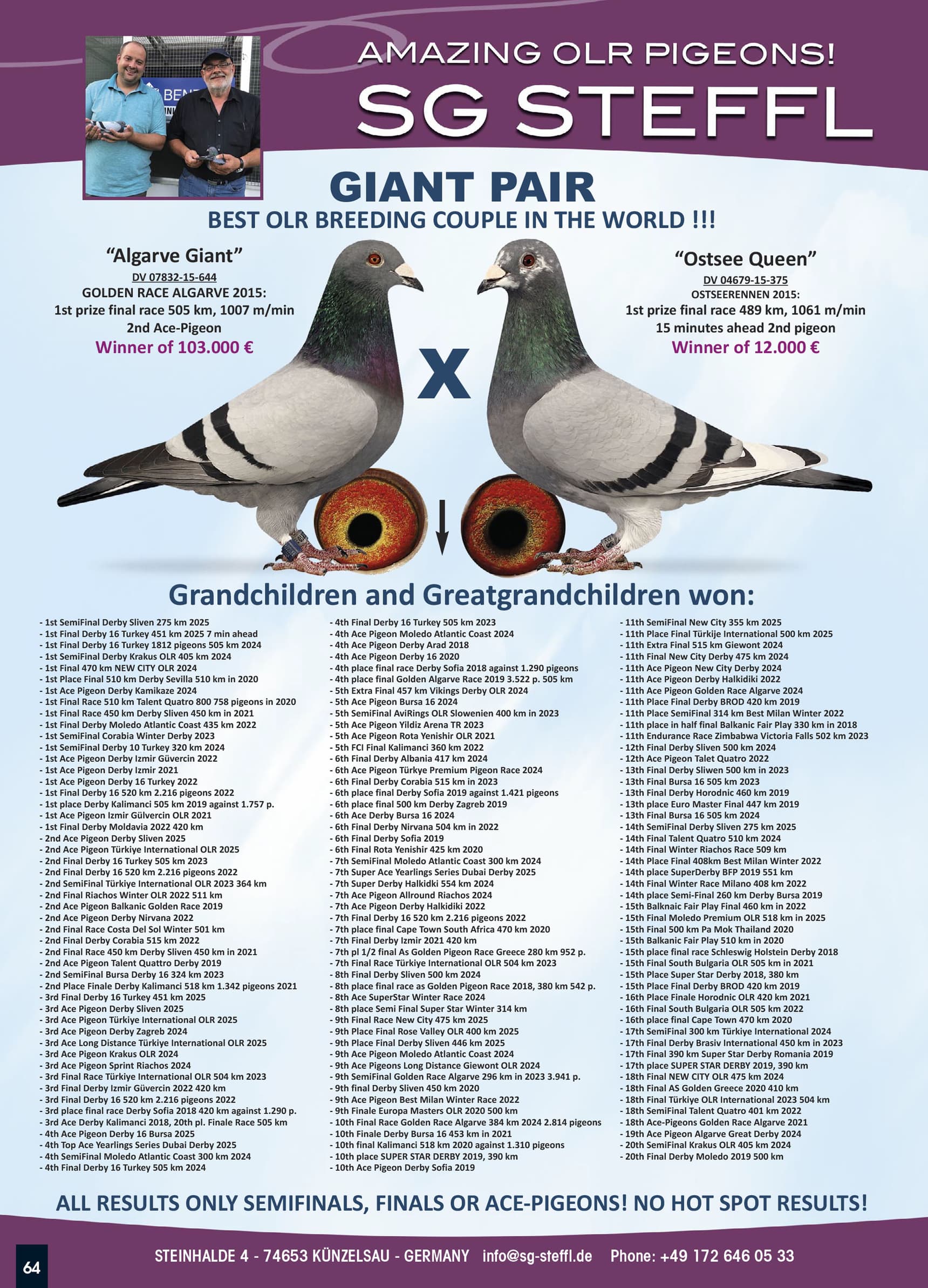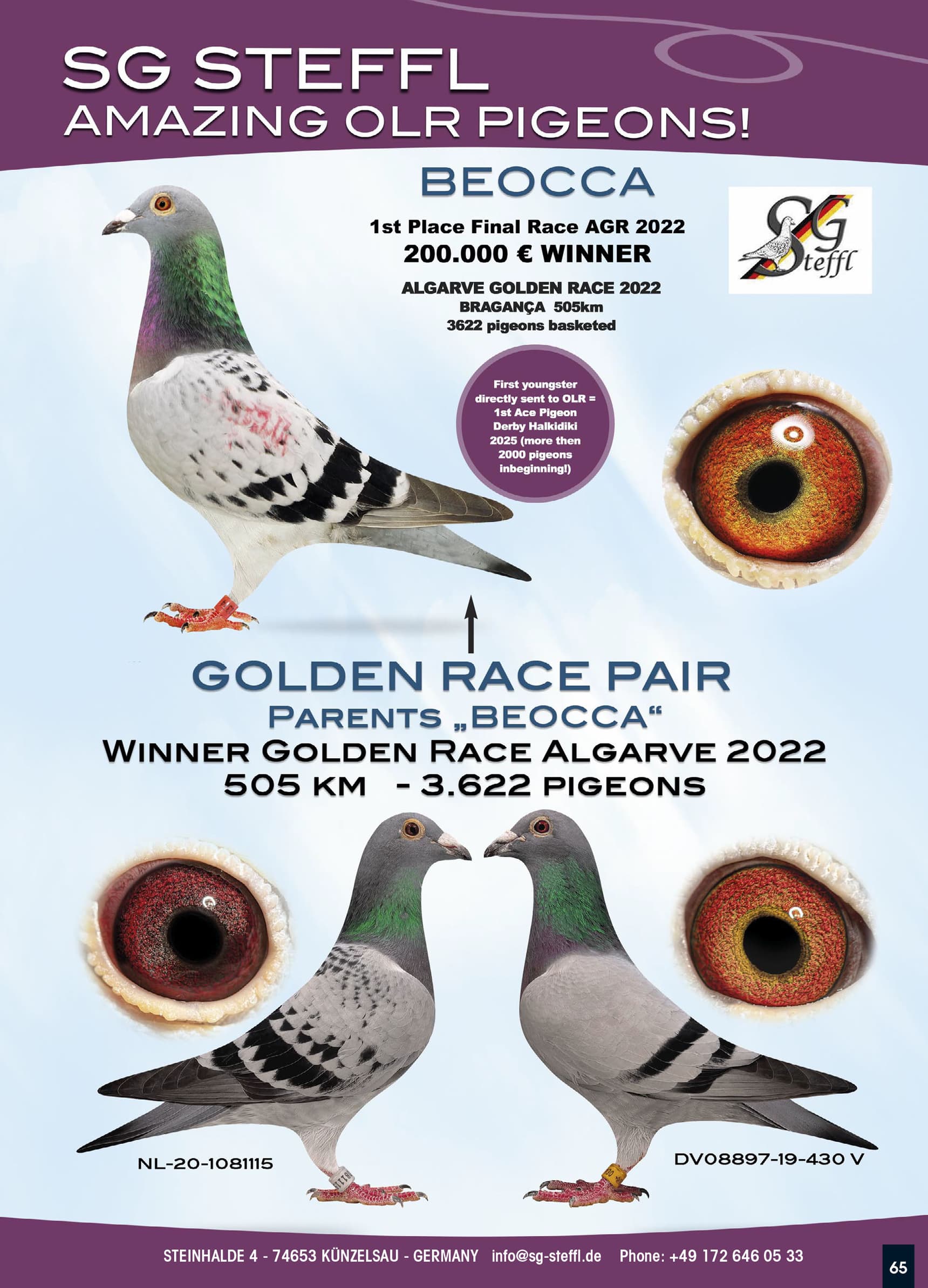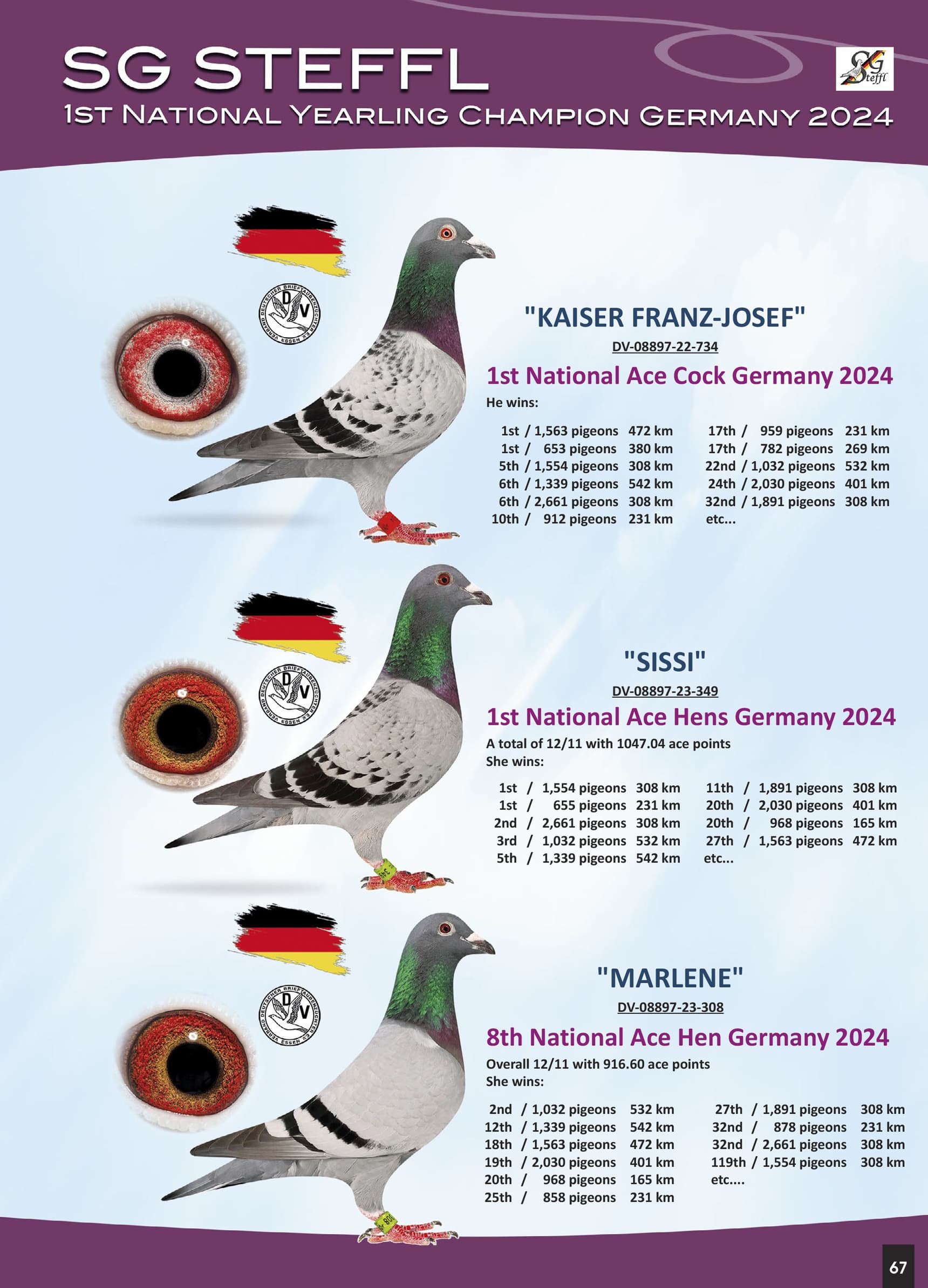 Spécialement pour la vente en ligne de Pigeon Bids,Franz und Martin Steffl ont élevé et sélectionné un magnifique groupe de 2025 pigeons parmi leurs meilleurs reproducteurs
