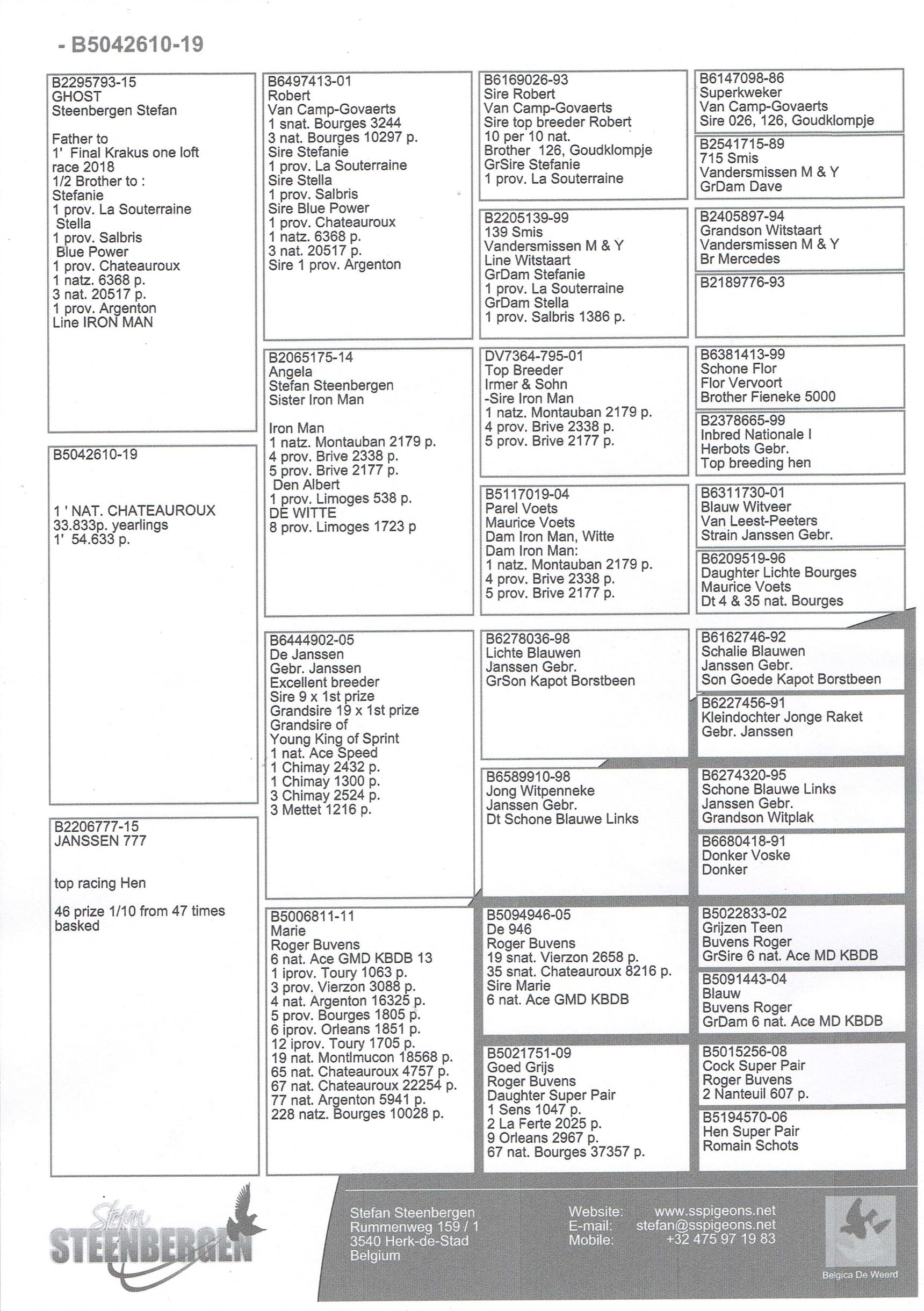 steenbergen stefan (herk-de-stad): 1st national chateauroux 33,220 yearbirds - fastest of 54,633 birds