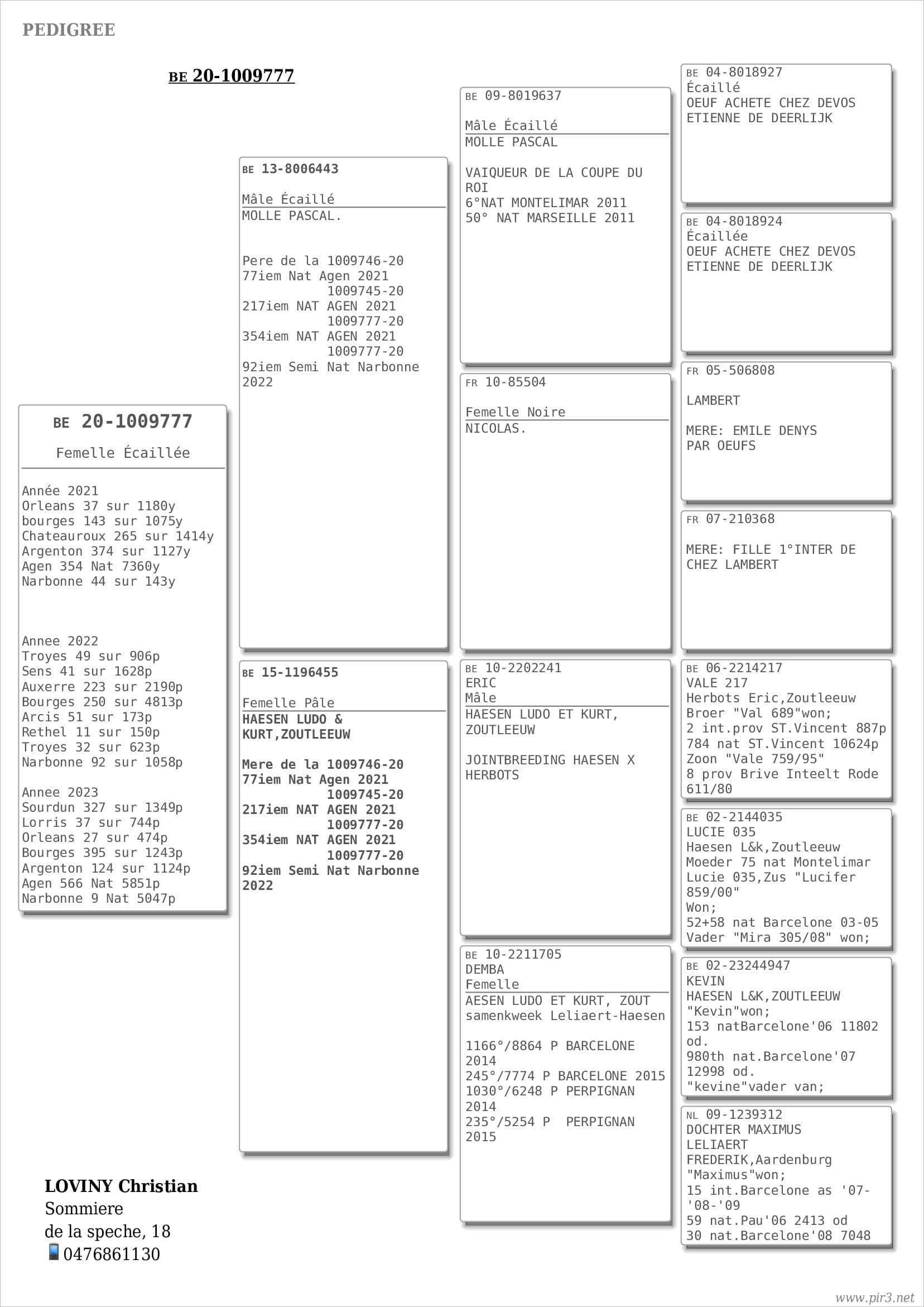 La BE 20-1009777 se classa également 9ième Nat Narbonne 2023. Une propre nièce, la BE 22-1013597 ratera la 30ième place nationale en fin de saison à cause d’un chip électronique défectueux..