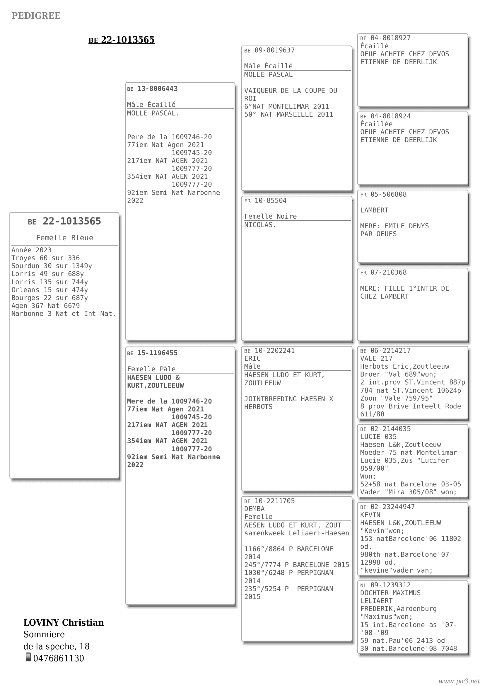 Sa BE 22-1013565 a excellée en faisant 2 top 10 nationaux en 2023 ! Un 3ième national et 3ième internat. à Narbonne précédé d’un 10ième national à Valence ! Encore une femelle issue de son couple de base ! Mais ce n’est pas tout !