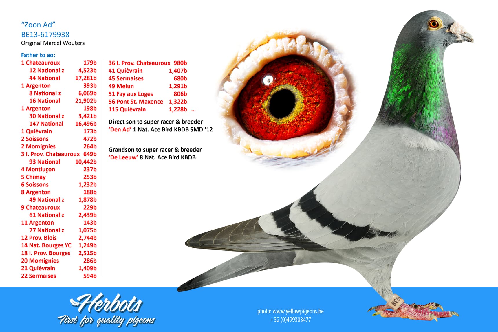 Direct son to super racer & breeder ‘Den Ad’ 1 Nat. Ace Bird KBDB SMD ‘12