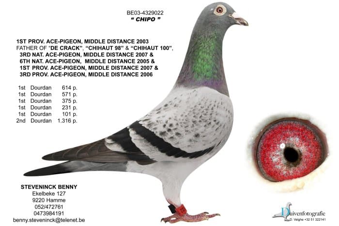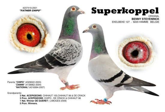 DIRECT SON CHAMPION BIRD “SPEEDY” , winner of 1st Nat (z) Poitiers 2,688b. - 2nd prov. Bourges 3,492b.