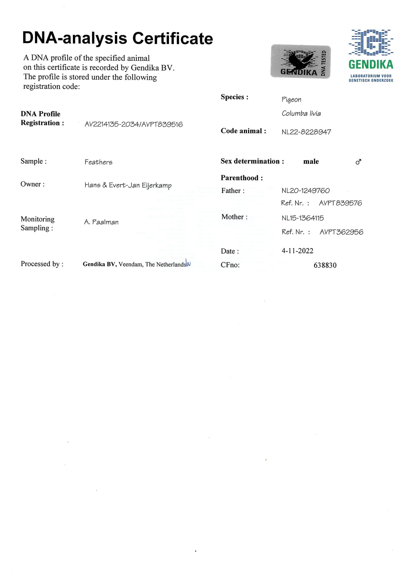 Éleveur : EIJERKAMP HANS & EVERT-JAN 汉斯 & 艾佛特-杨·爱亚卡普