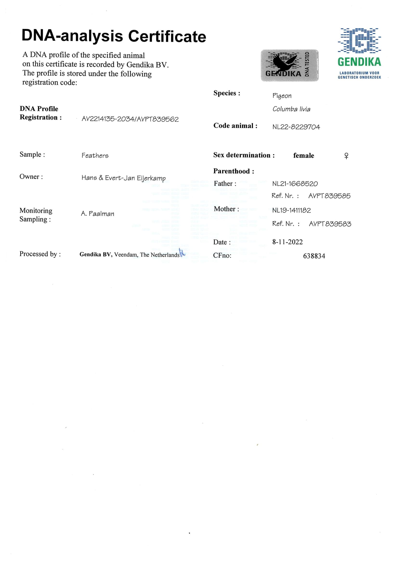 Éleveur : EIJERKAMP HANS & EVERT-JAN 汉斯 & 艾佛特-杨·爱亚卡普