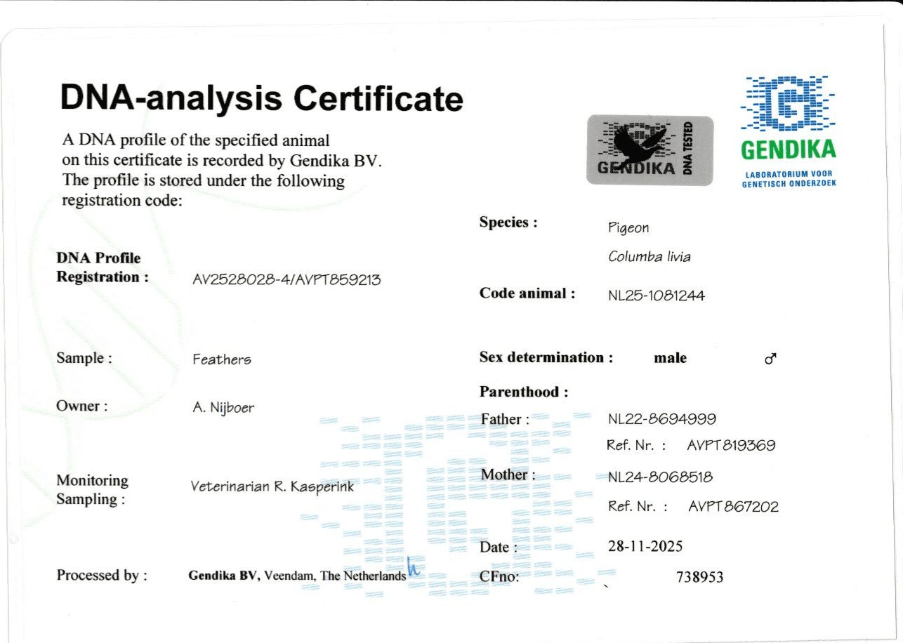 Won: 7 x 1st – 1st NPO Laon 6,371b. – 1st Duffel 5,821b. -