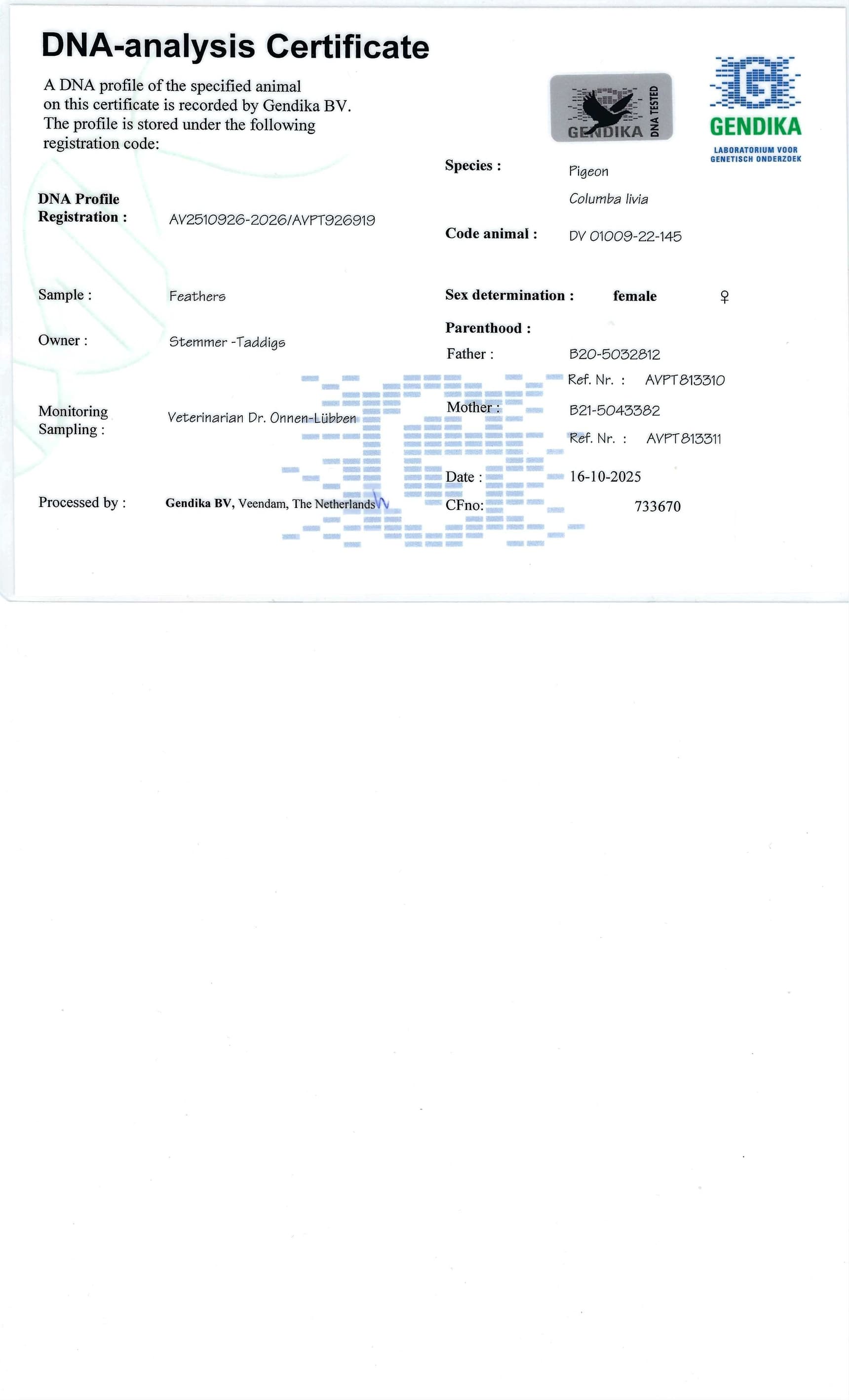 Born out “Zwartkop” x “Laatje 14” (daughter “White