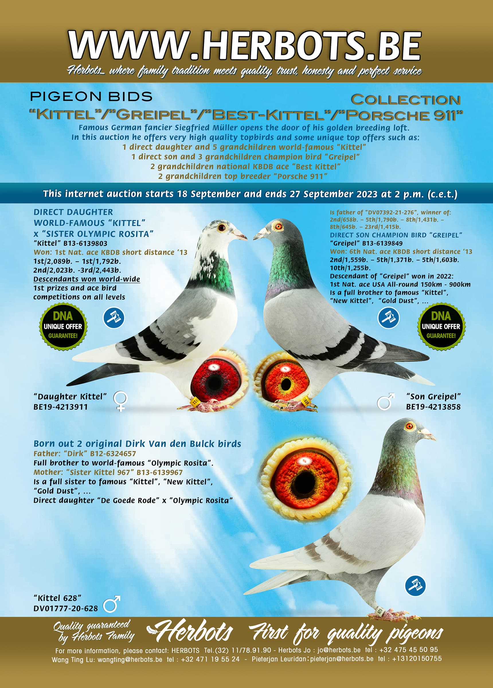 Famous German fancier Siegfried Müller opens the door of his golden breeding loft. In this auction he offers very high quality topbirds and some unique top offers such as: