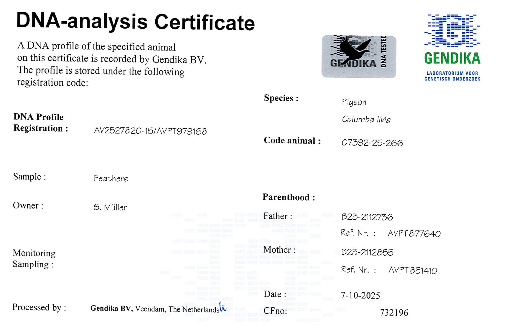 1st Nat. Olympic Ace pigeon Y.B. Cat. F 2020