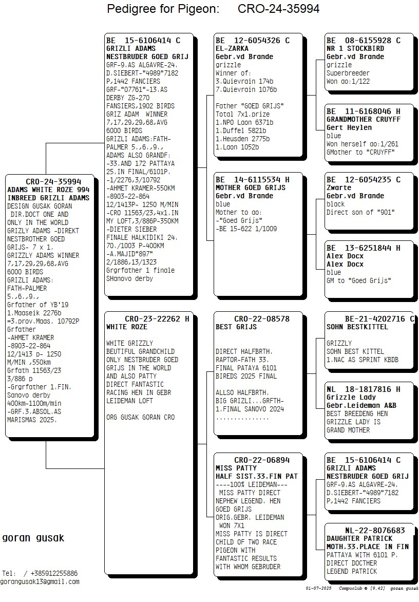 Is nest-mate to world-famous “Goed Grijs” (7 x 1st)