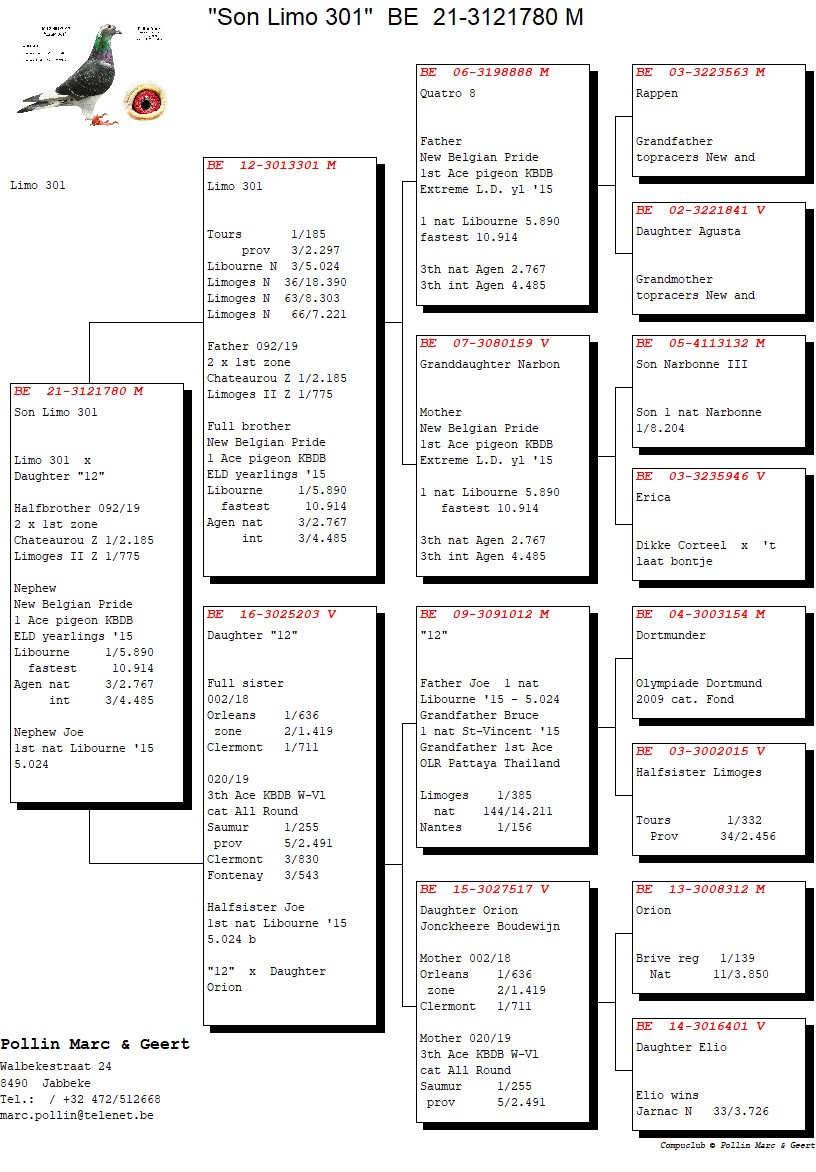 1st National Ace KBDB Marathon 2015 year birds – 1st Nat. Libourne 5,890b. (fastest 10,901b.) 3rd International Agen 4,485b.