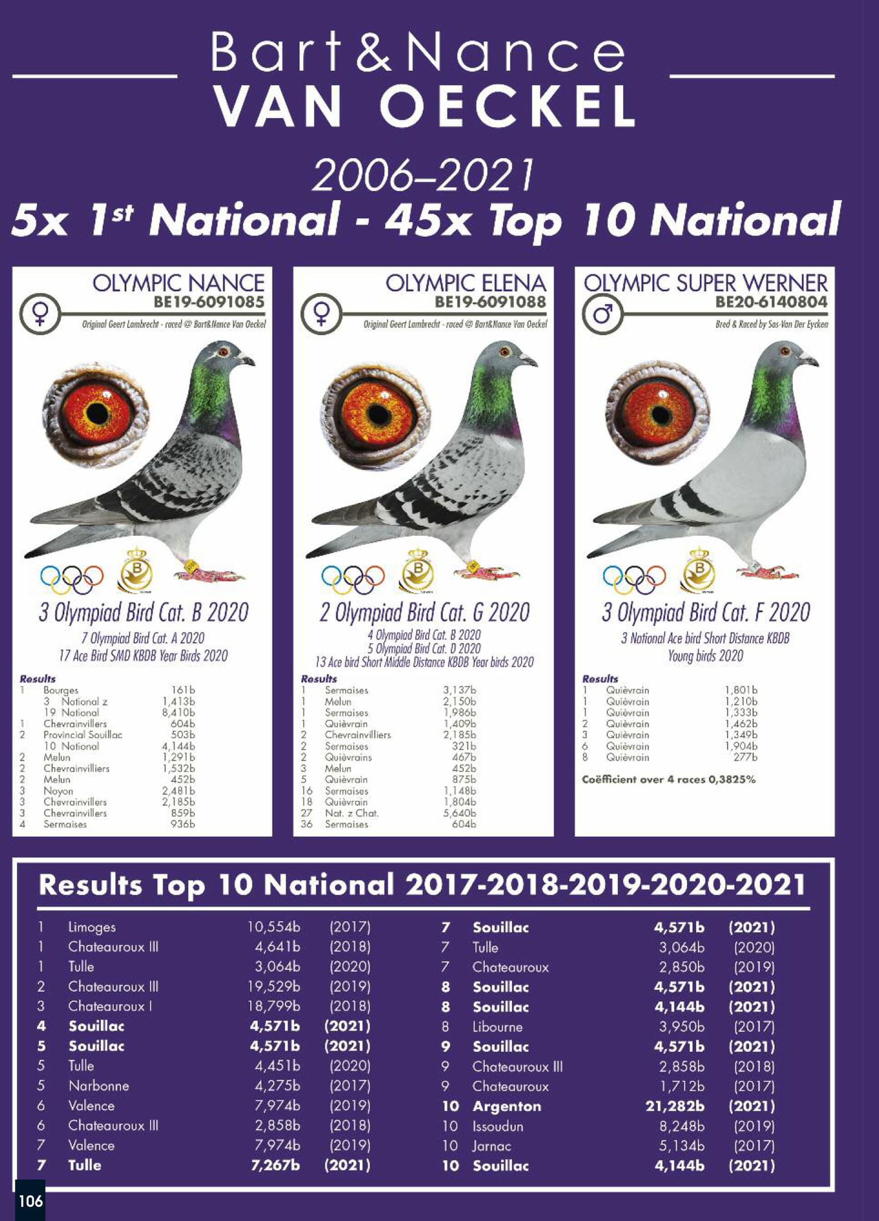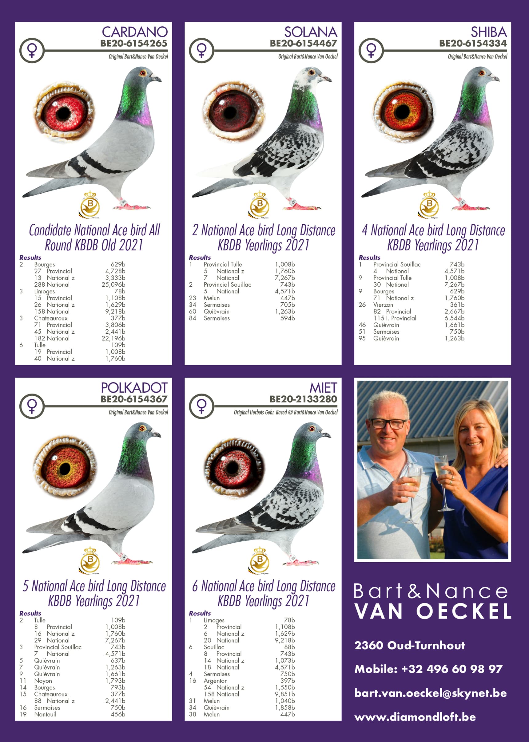 Won: 1st ace WENC – 1st Nat. La Souterraine 20,124b. - 5th Nat. Bourges 24,676b. - 10th Nat. La Souterraine 4,478b. – Current base breeder
