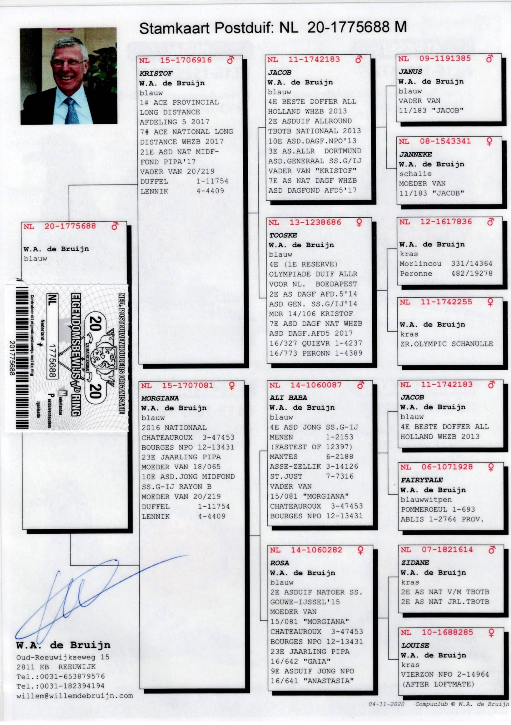Éleveur : 100% WILLEM DE BRUIJN 纯威廉迪布恩血统