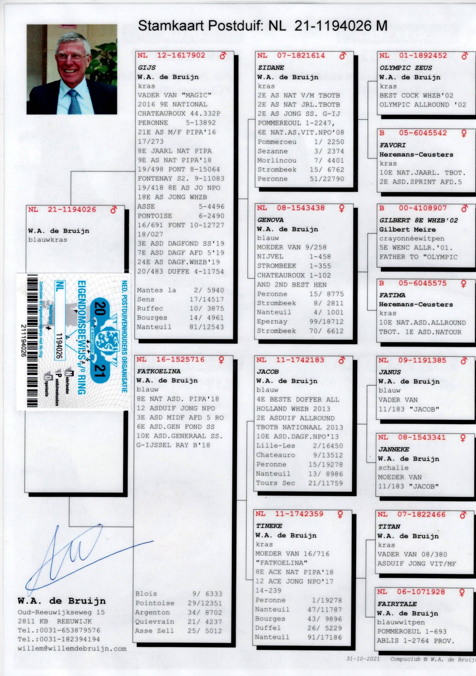 A daughter of “Gijs” is at Chris Debacker a top breeding hen