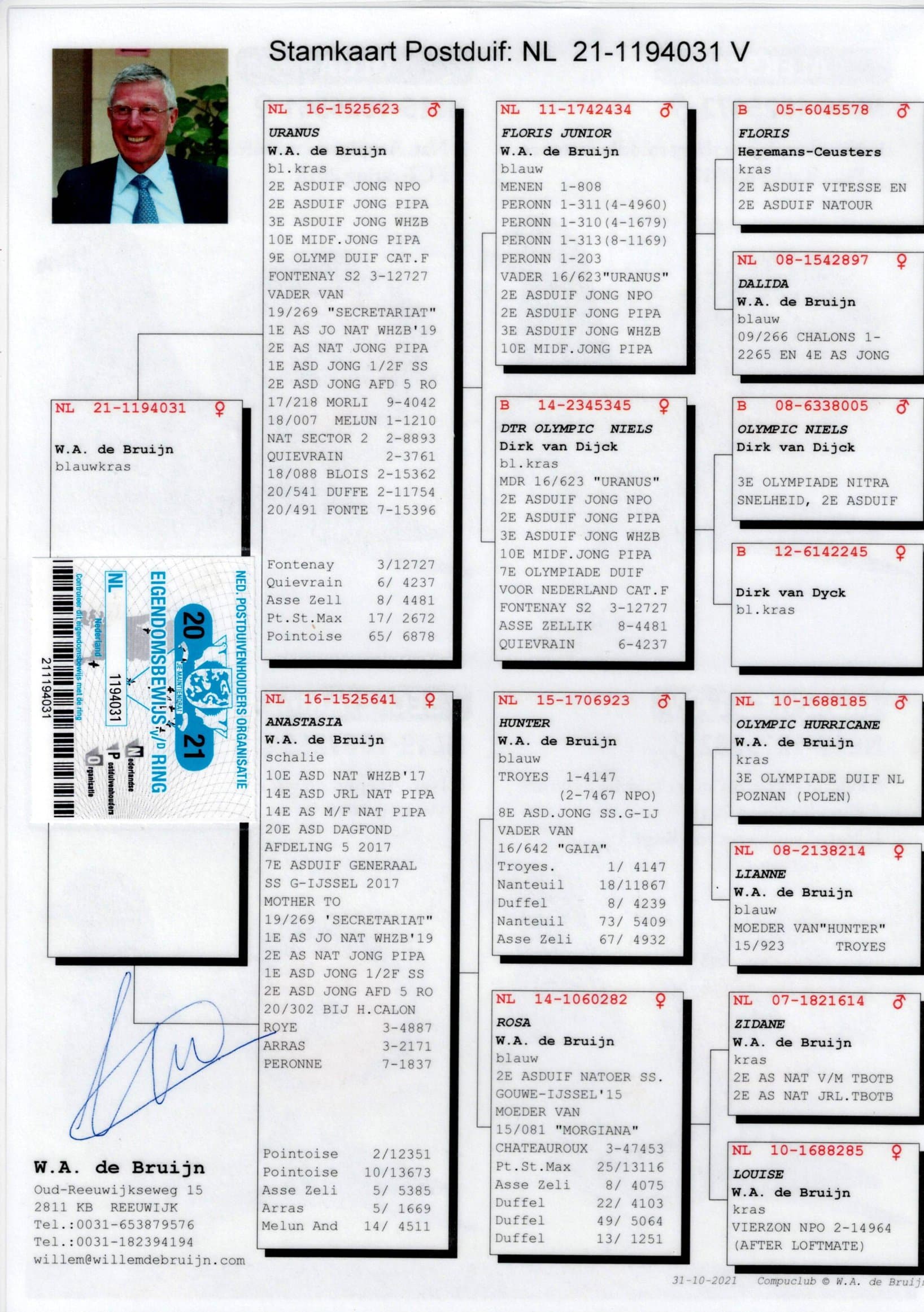 Éleveur : 100% WILLEM DE BRUIJN 纯威廉迪布恩血统