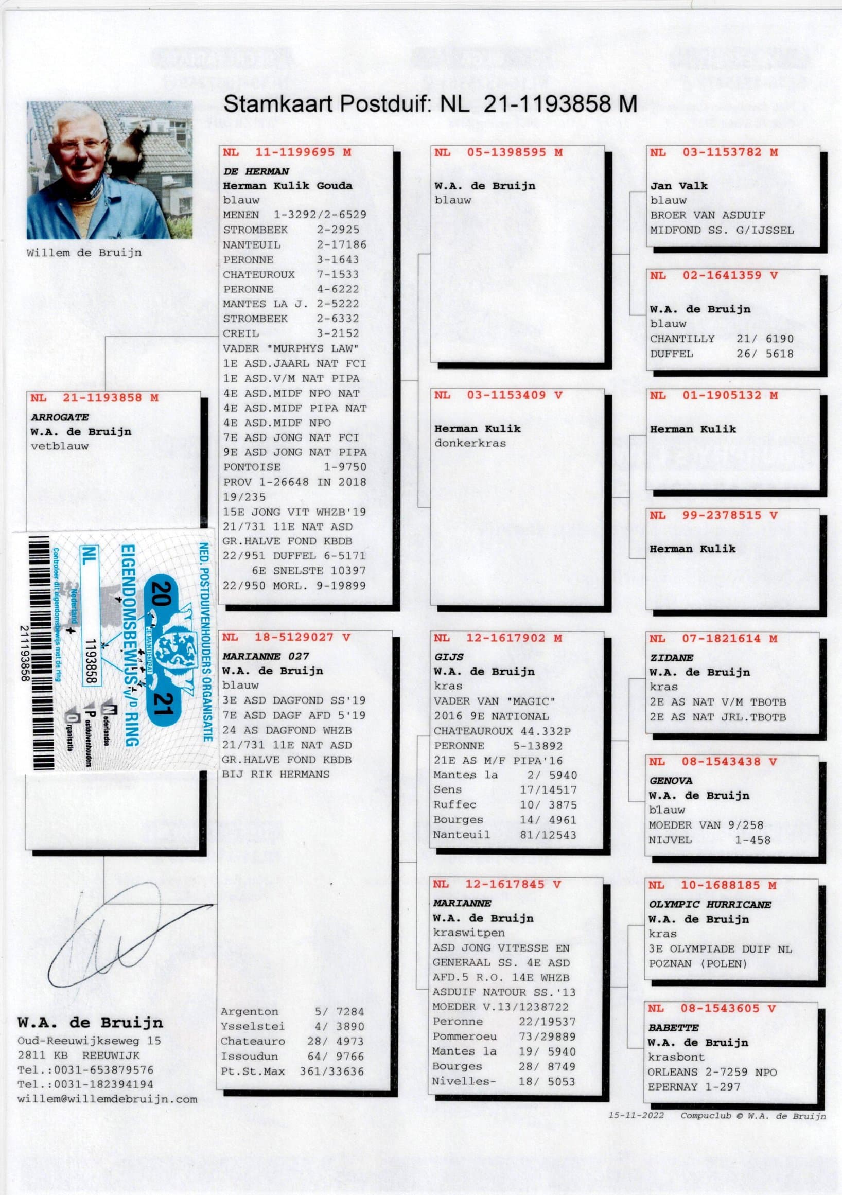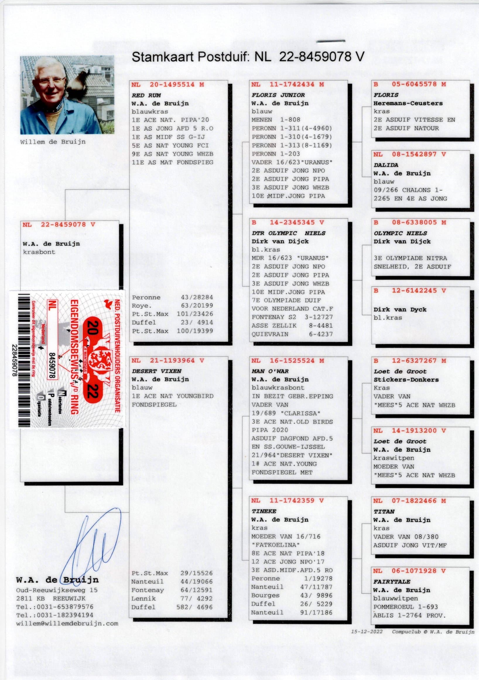 Éleveur : 100% WILLEM DE BRUIJN 纯威廉迪布恩血统