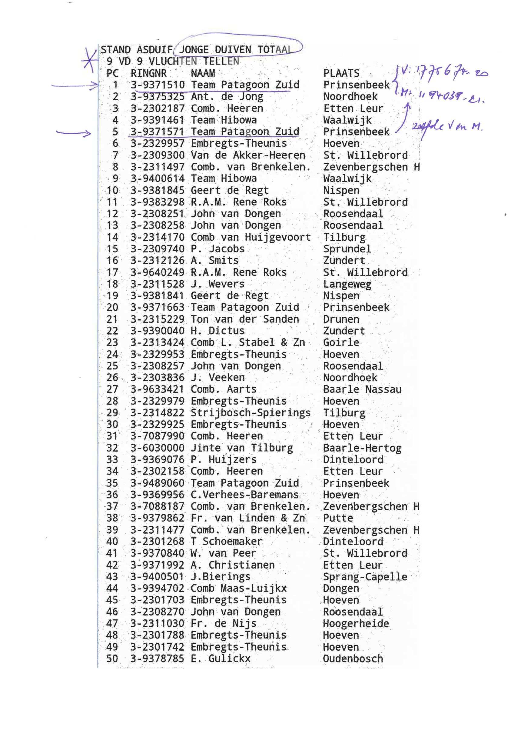 “19-469”: 1e Nat.Z.Tulle 1316 d. (6th Nat. 4,451b.) at Rik Hermans