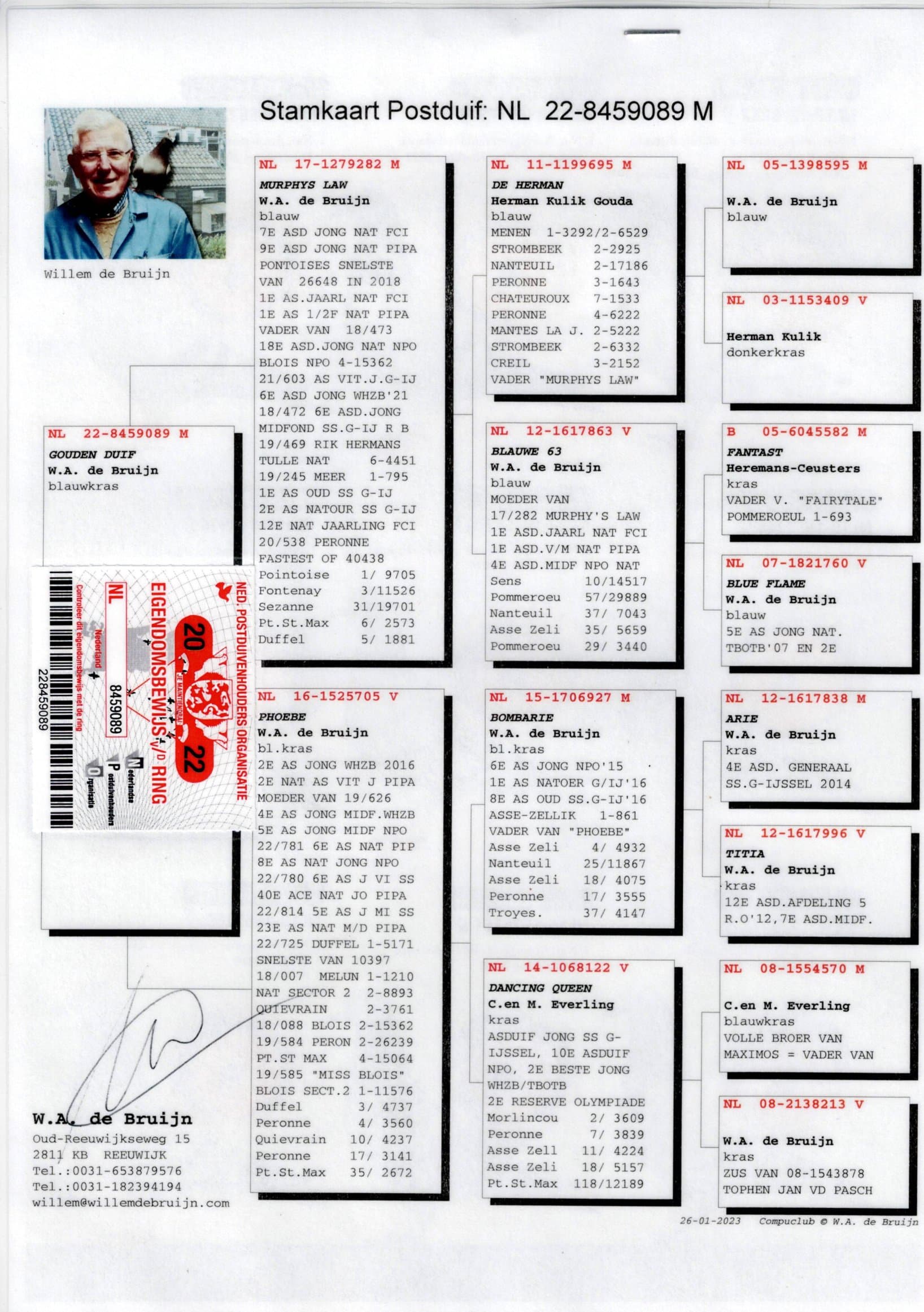 Éleveur : 100% WILLEM DE BRUIJN 纯威廉迪布恩血统