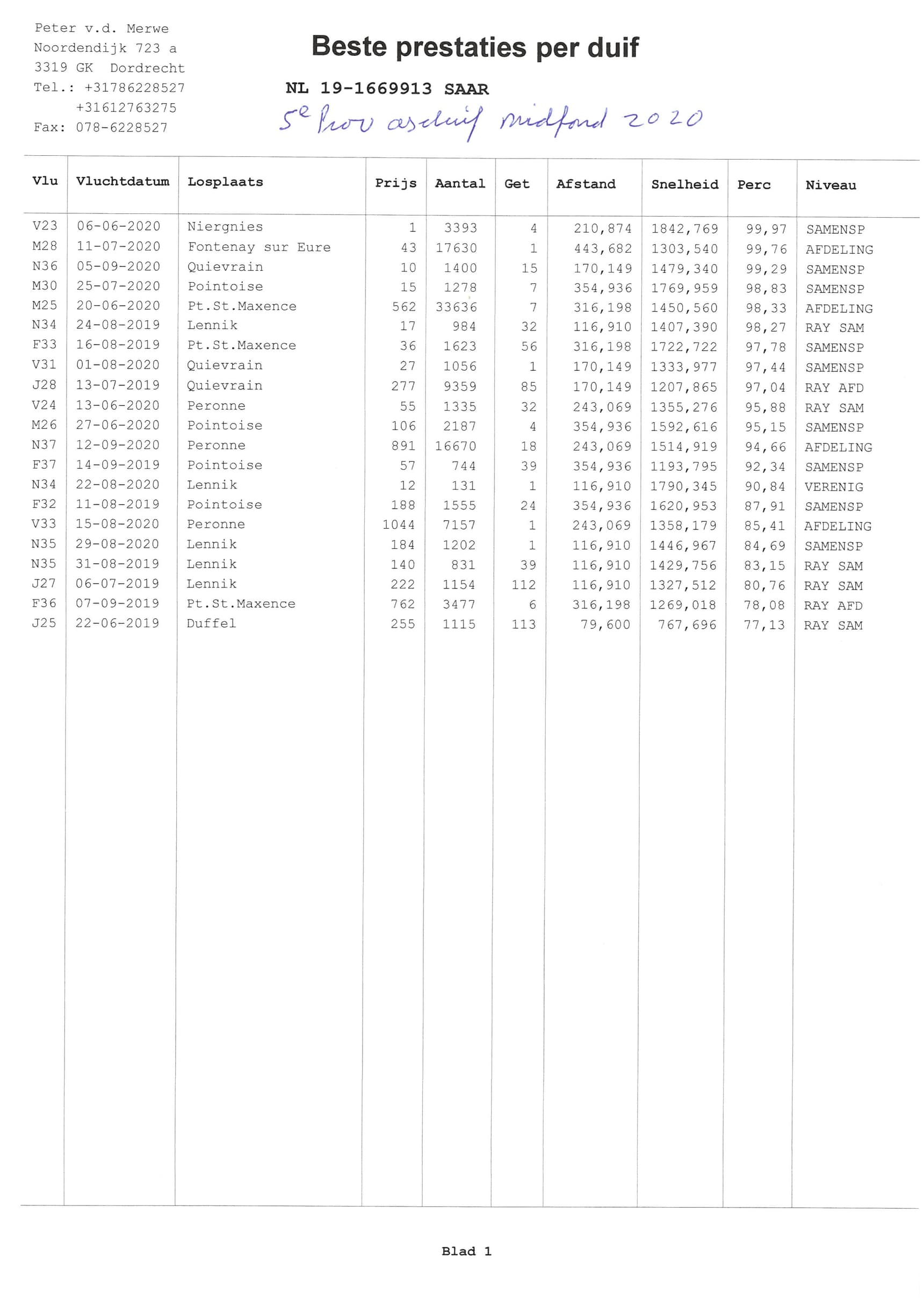 “Ineke” : 1st NPO Pont 12,240b. (2nd/33,636b.)