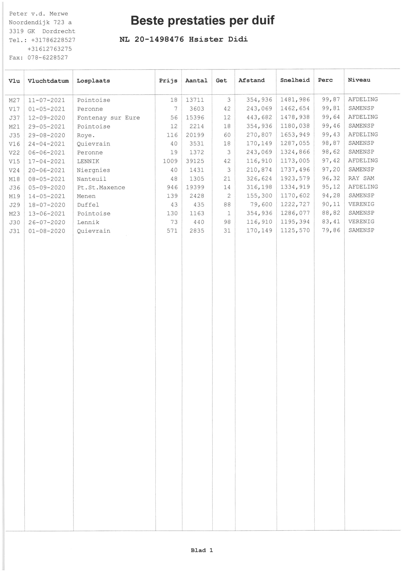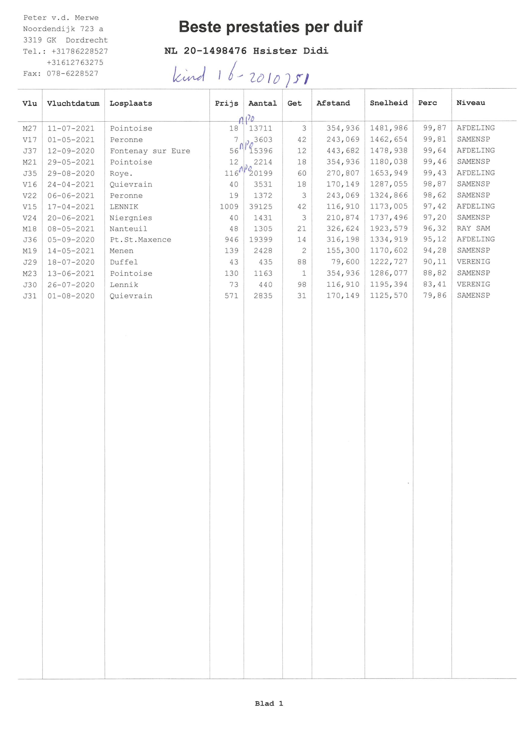Father: “B16-2010751” – 100% Gaston Van de Wouwer