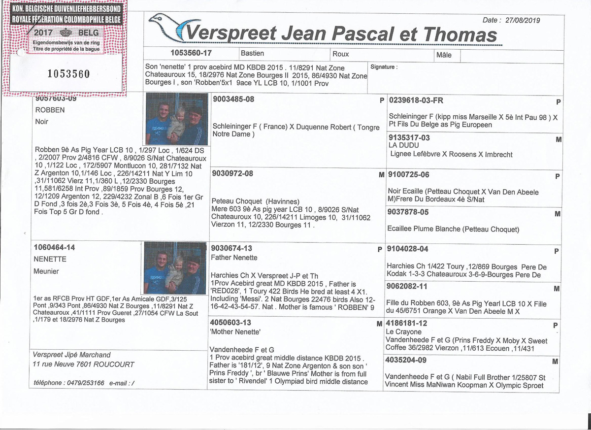 Éleveur : VERSPREET JEAN PASCAL & THOMAS
