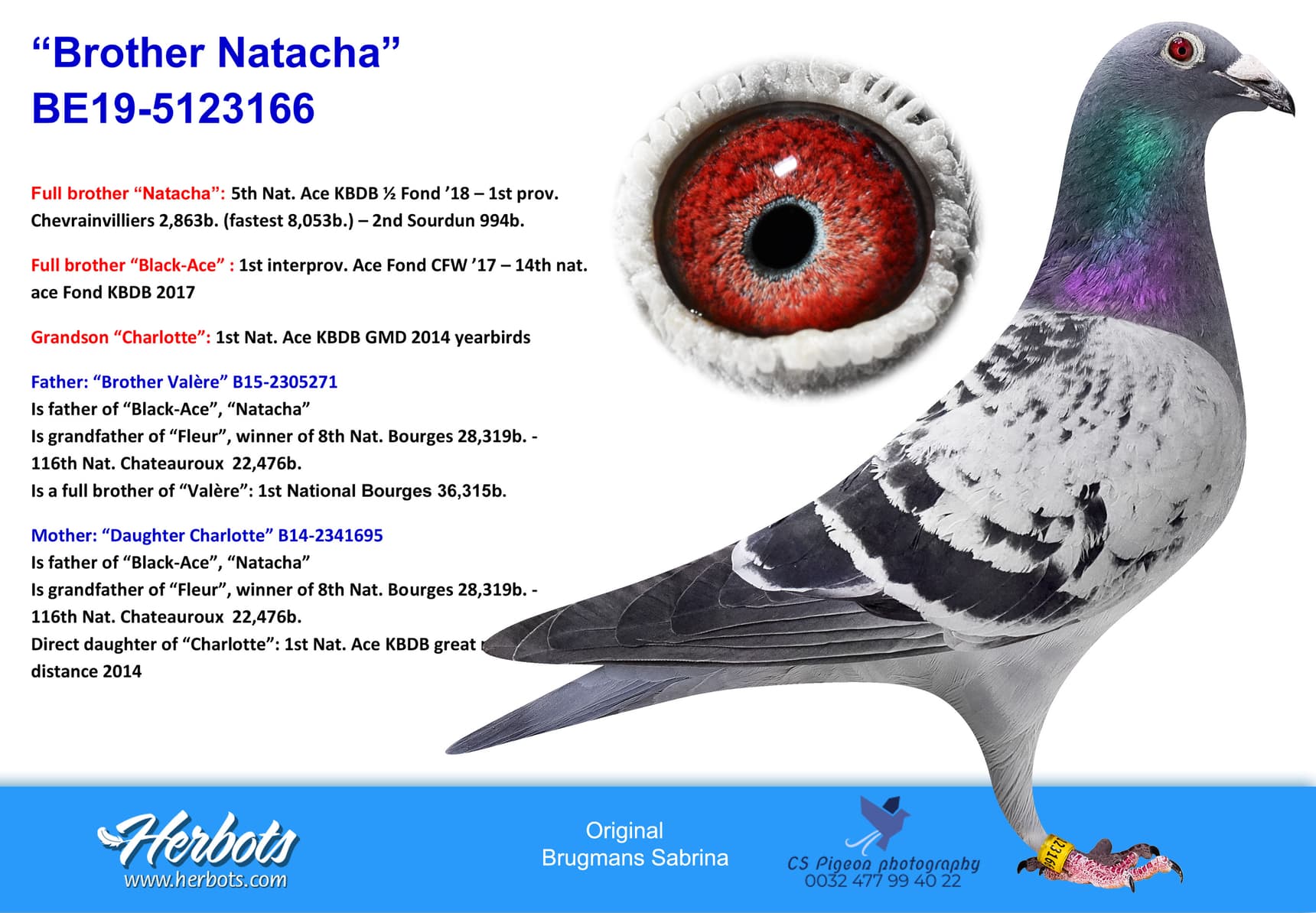Full brother “Natacha”: 5th Nat. Ace KBDB ½ Fond ’18 – 1st prov. Chevrainvilliers 2,863b. (fastest 8,053b.) – 2nd Sourdun 994b.