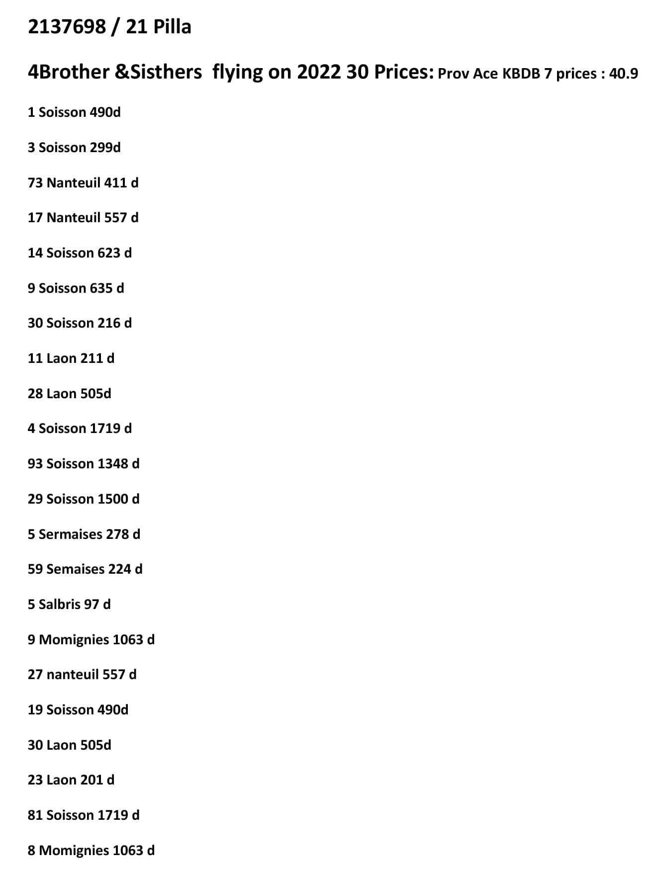 Vendeur : VANDERSMISSEN BREEDING LOFT